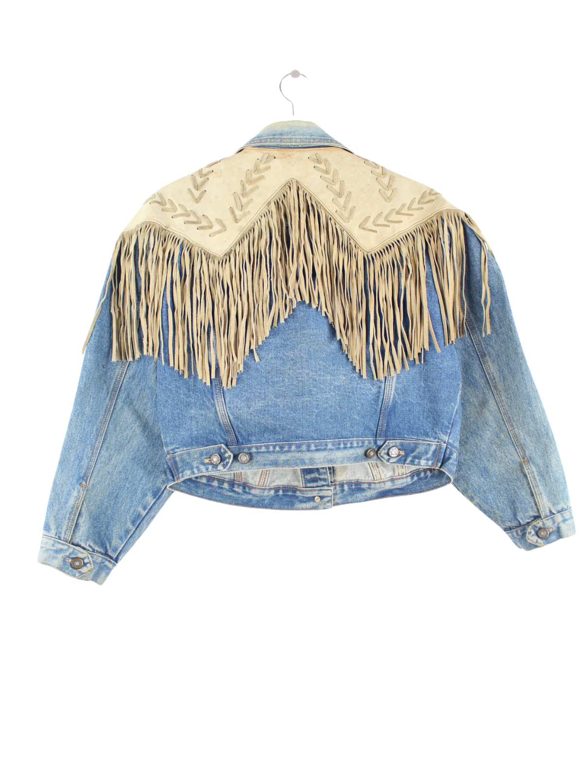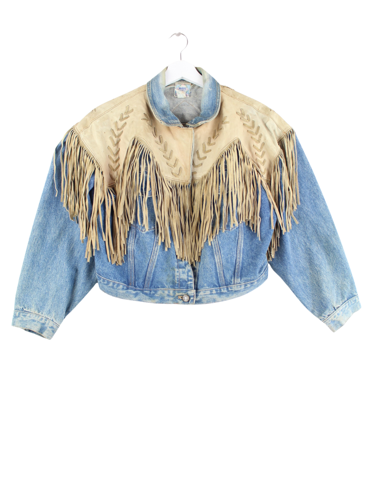 Blue vintage jacket from the 80's in size M. It is made of a cotton blend and is in good condition.