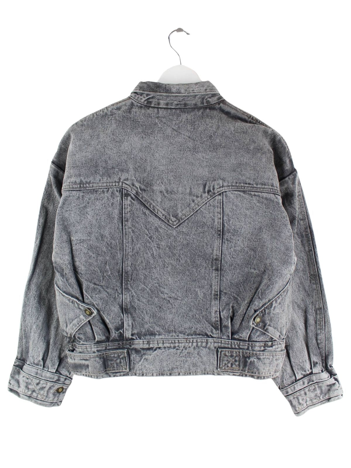 Vintage Damen 80s Embroidered Crop Jeans Jacke Grau M