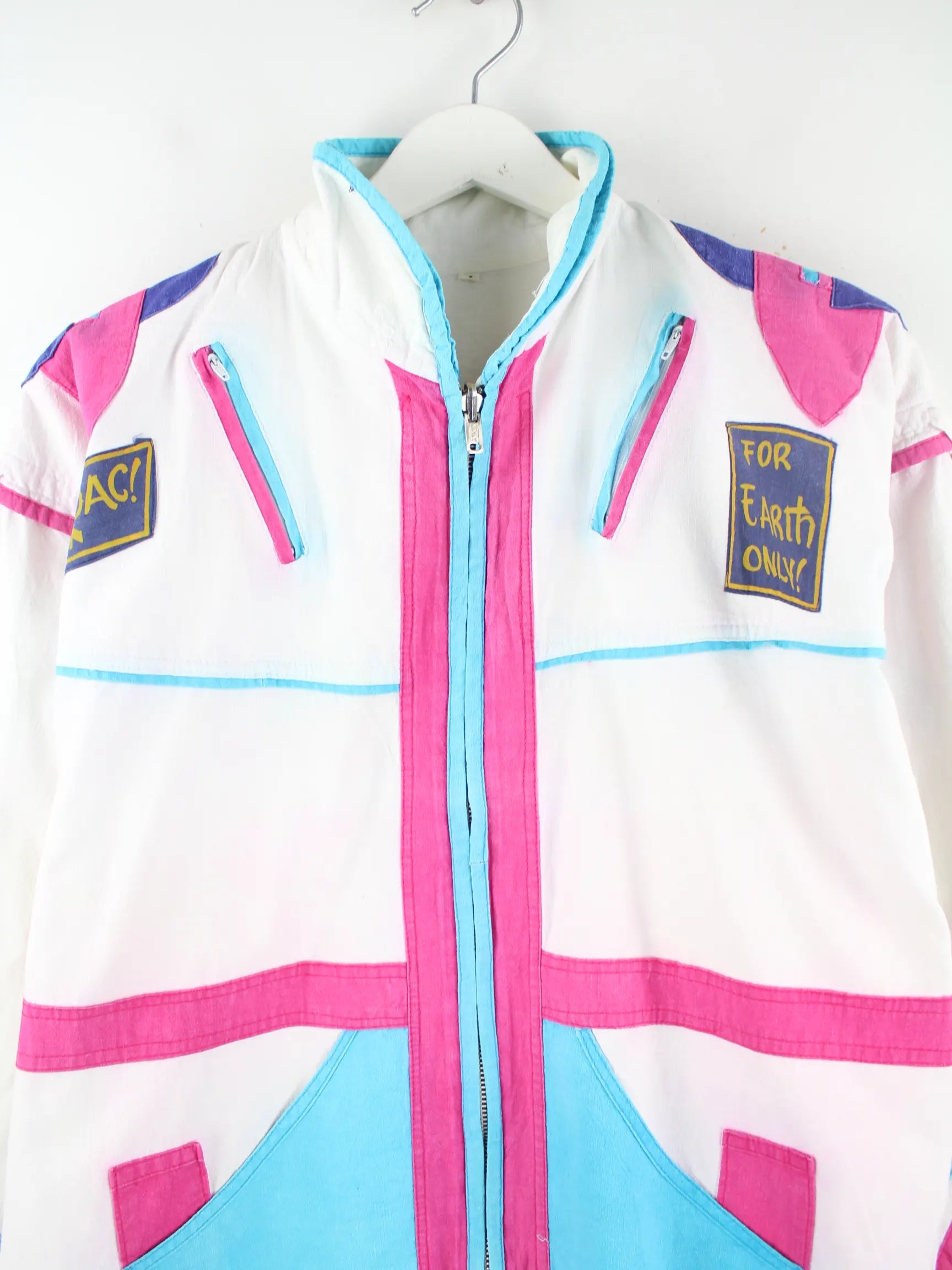 Vintage Leichte Jacke in Größe L aus den 80'ern. Sie ist aus Baumwolle produziert und in Weiß bei uns zu bekommen.