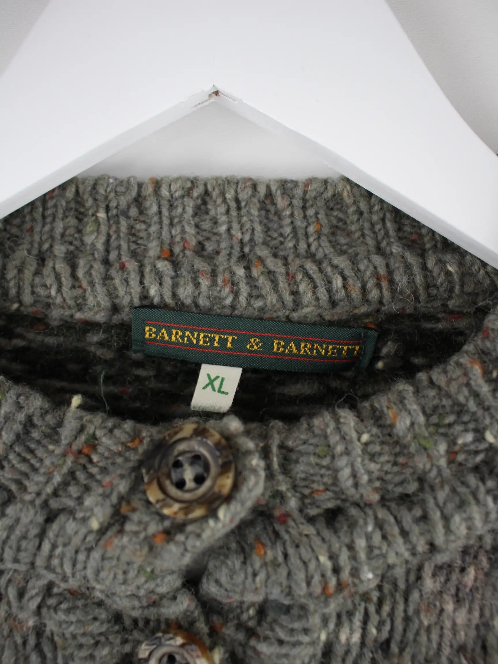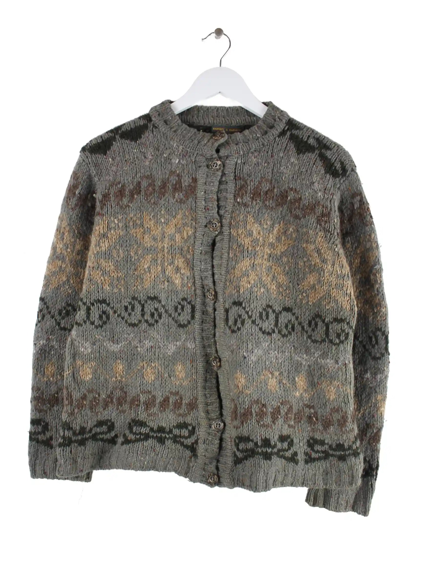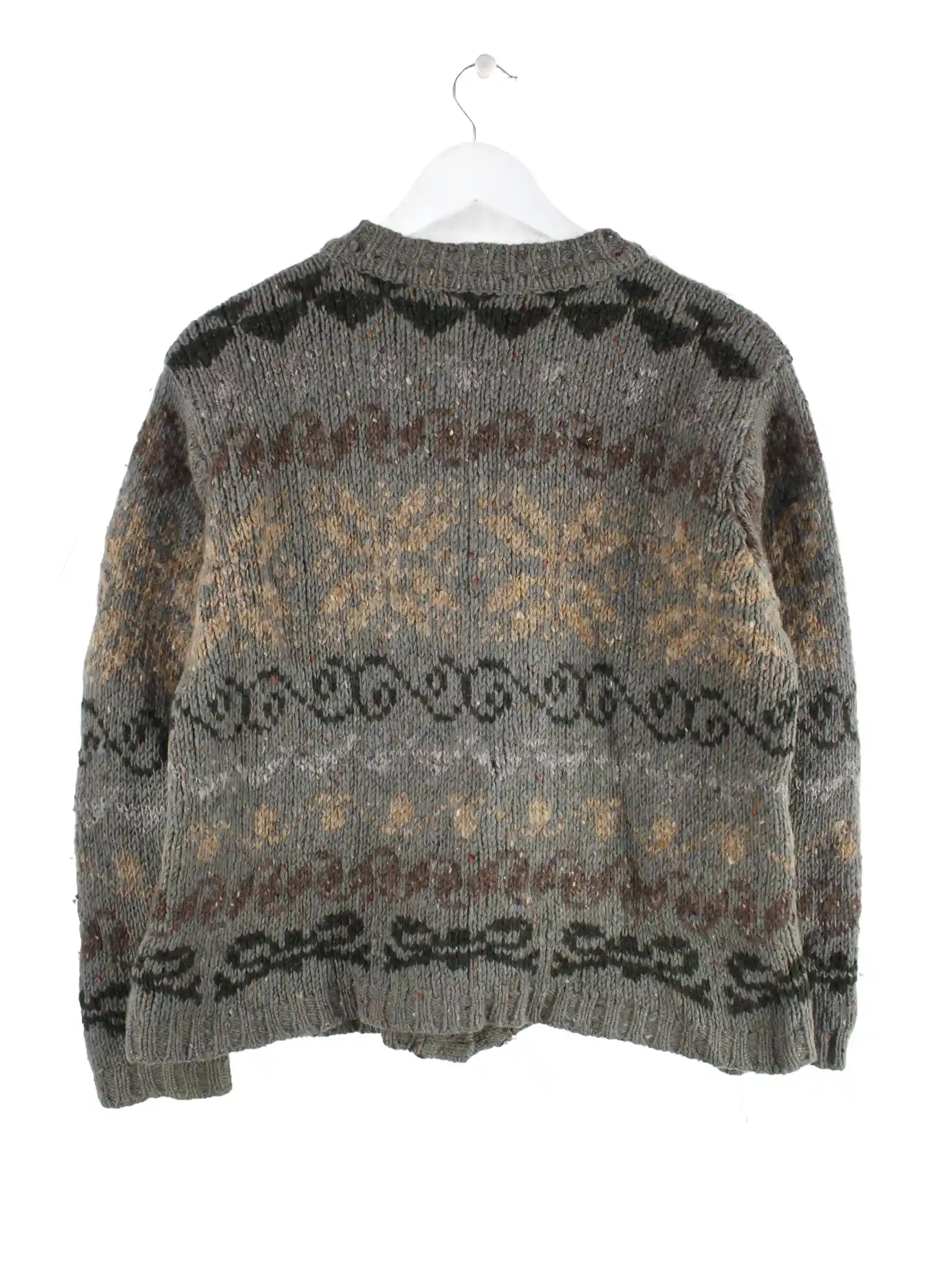 Vintage Strickjacke in Größe XL aus den 90'ern. Sie ist aus Wolle gefertigt und in Grau im Bestand.