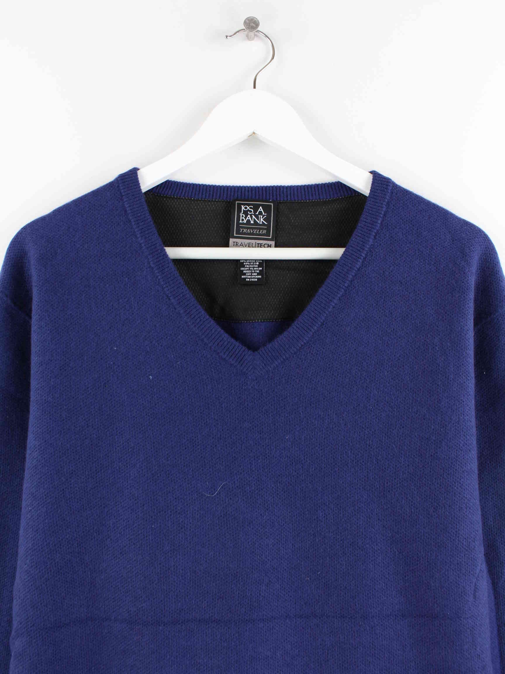 Vintage ladies V-neck wool sweater blue XXL