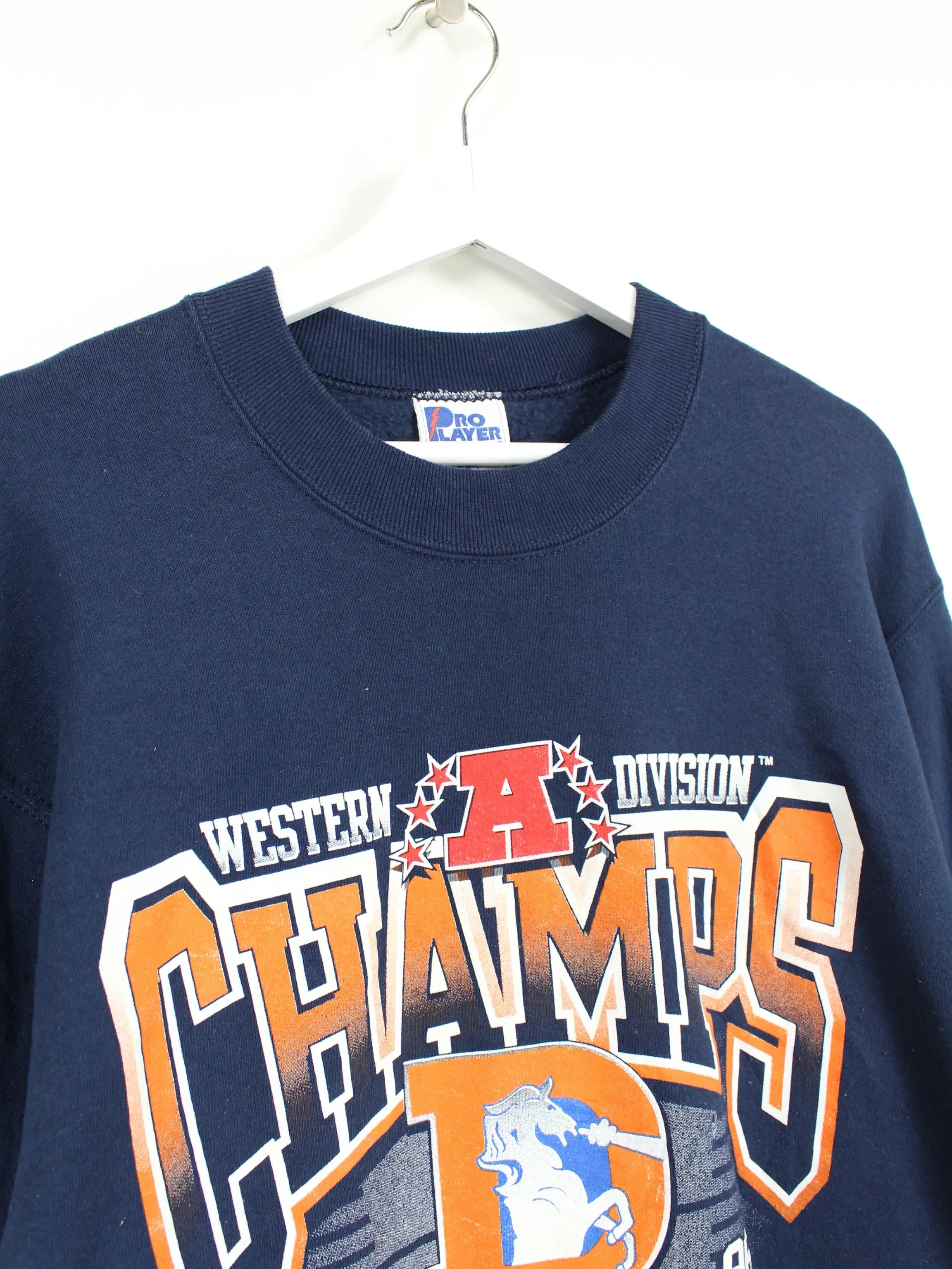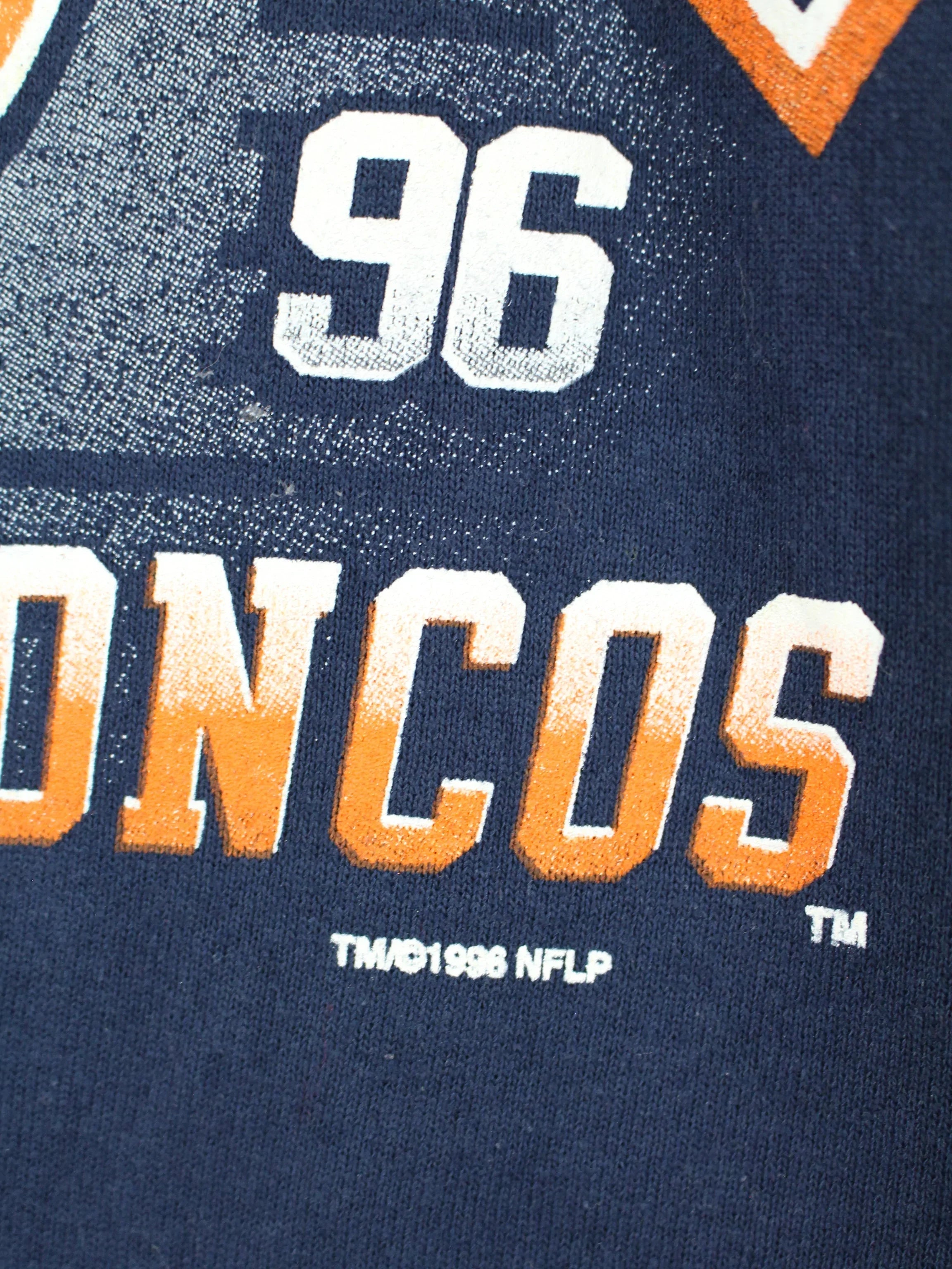 Blue vintage sweater of the Denver Broncos from 1996.