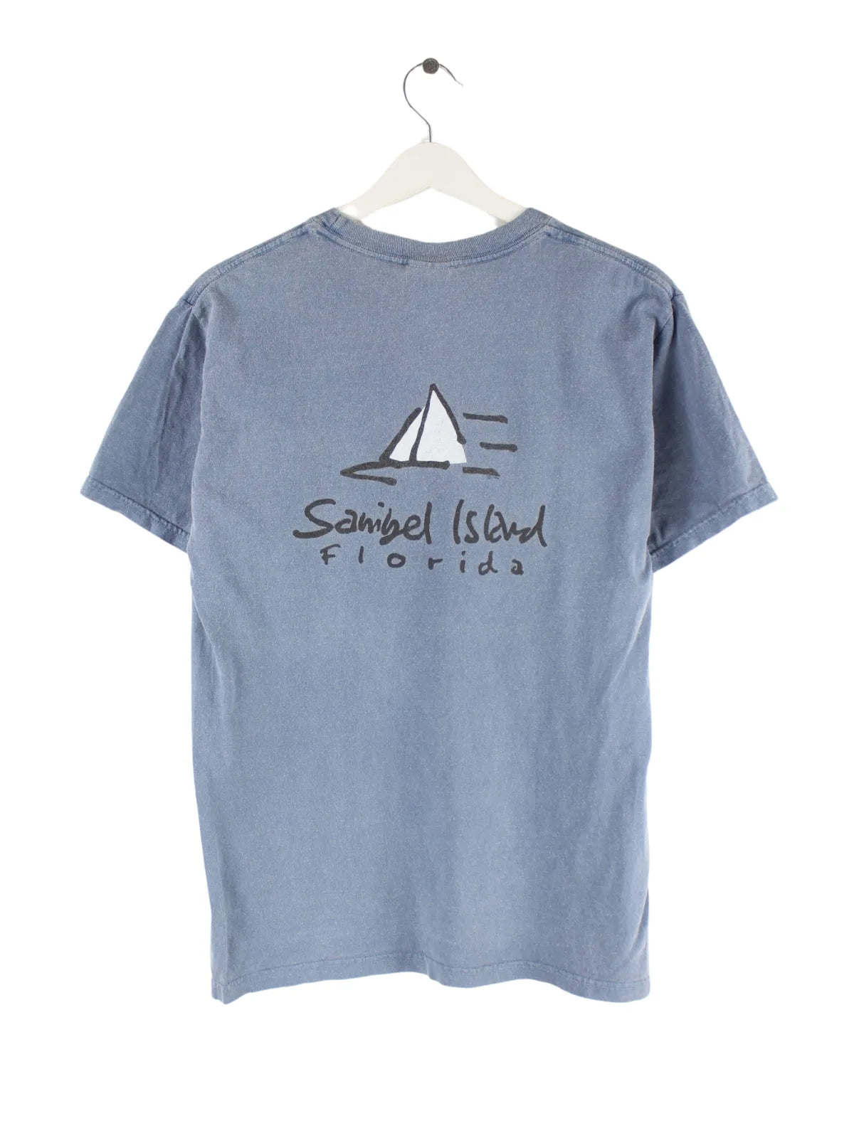 Blaues Vintage T-Shirt in Größe S. Es ist aus einer Baumwollmischung gefertigt und in sehr gutem Zustand zu haben. Mit schickem Sail Print.