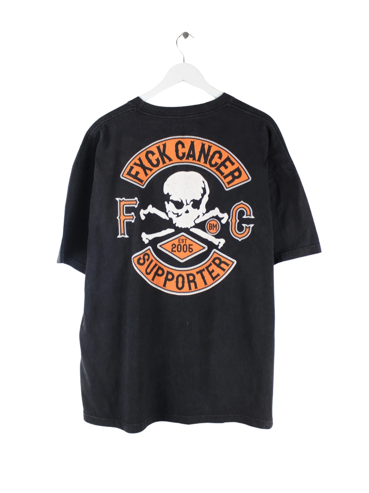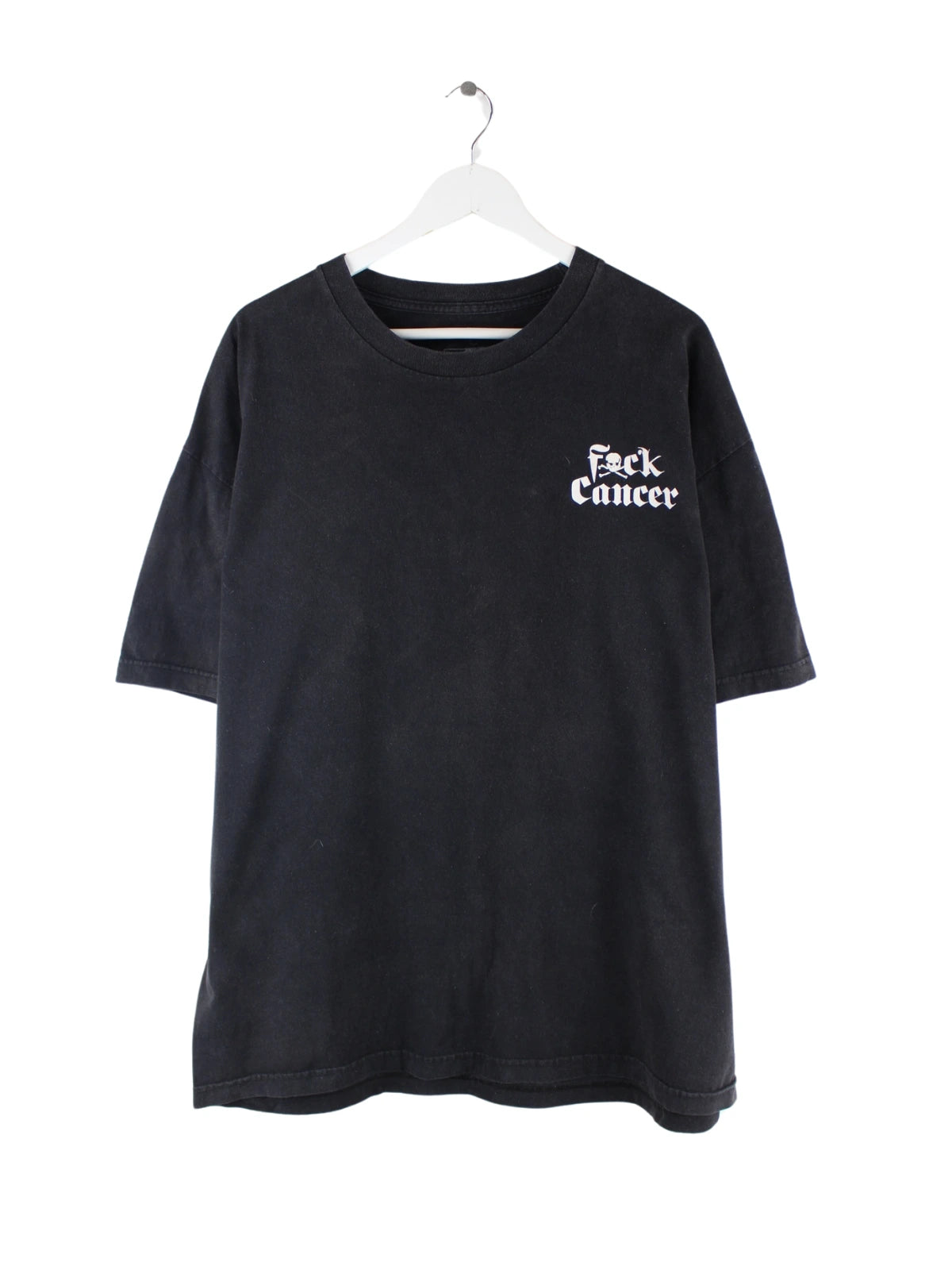 Schwarzes Vintage T-Shirt in Größe XXL. Es ist aus Baumwolle gefertigt und in gutem Zustand bei uns zu bekommen. Mit tollem Cancer Print.