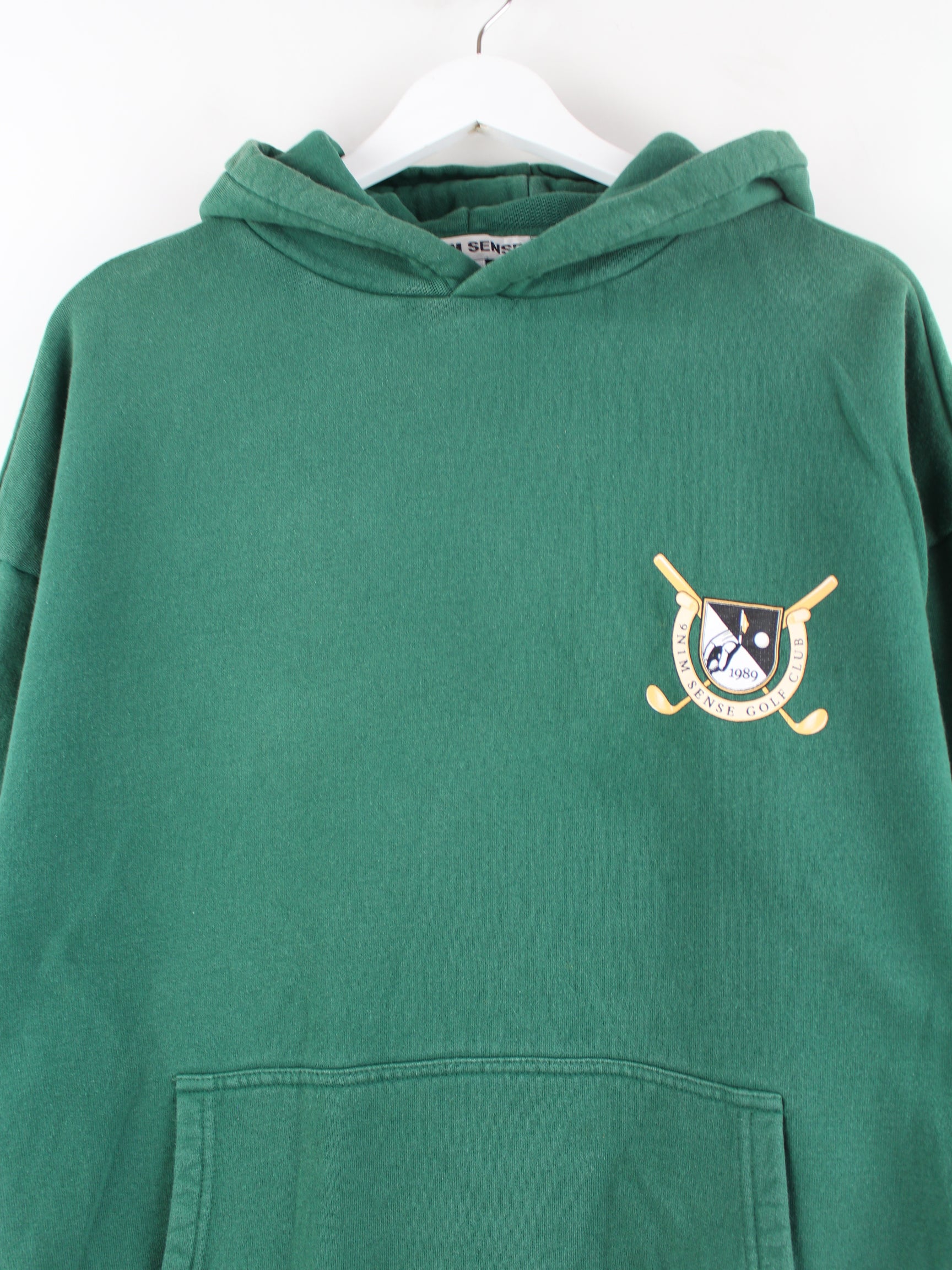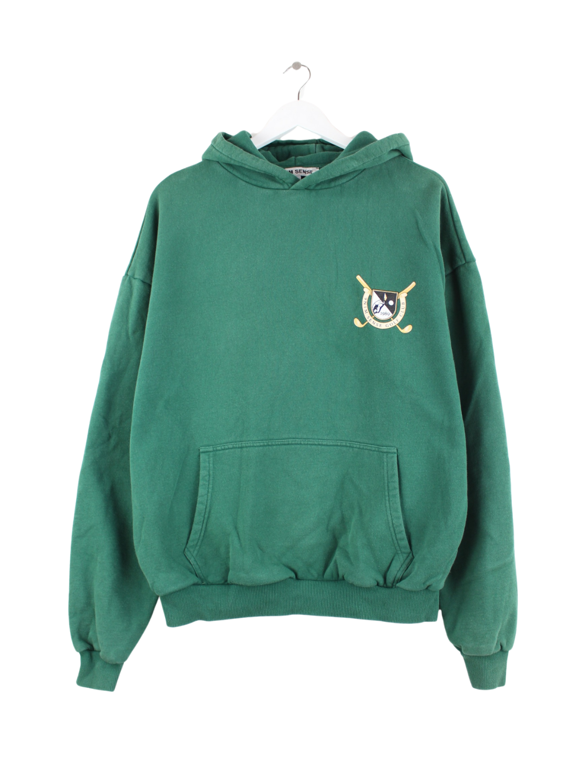 Vintage hoodie in size L. It is made of cotton and available in green. With a great club print.
