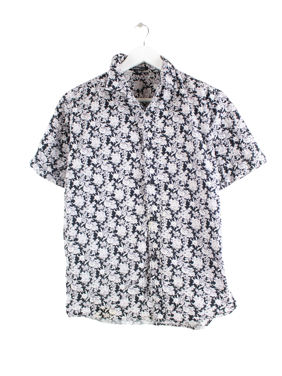 Vintage casual shirt in size S. It is made of a cotton blend and comes in black.