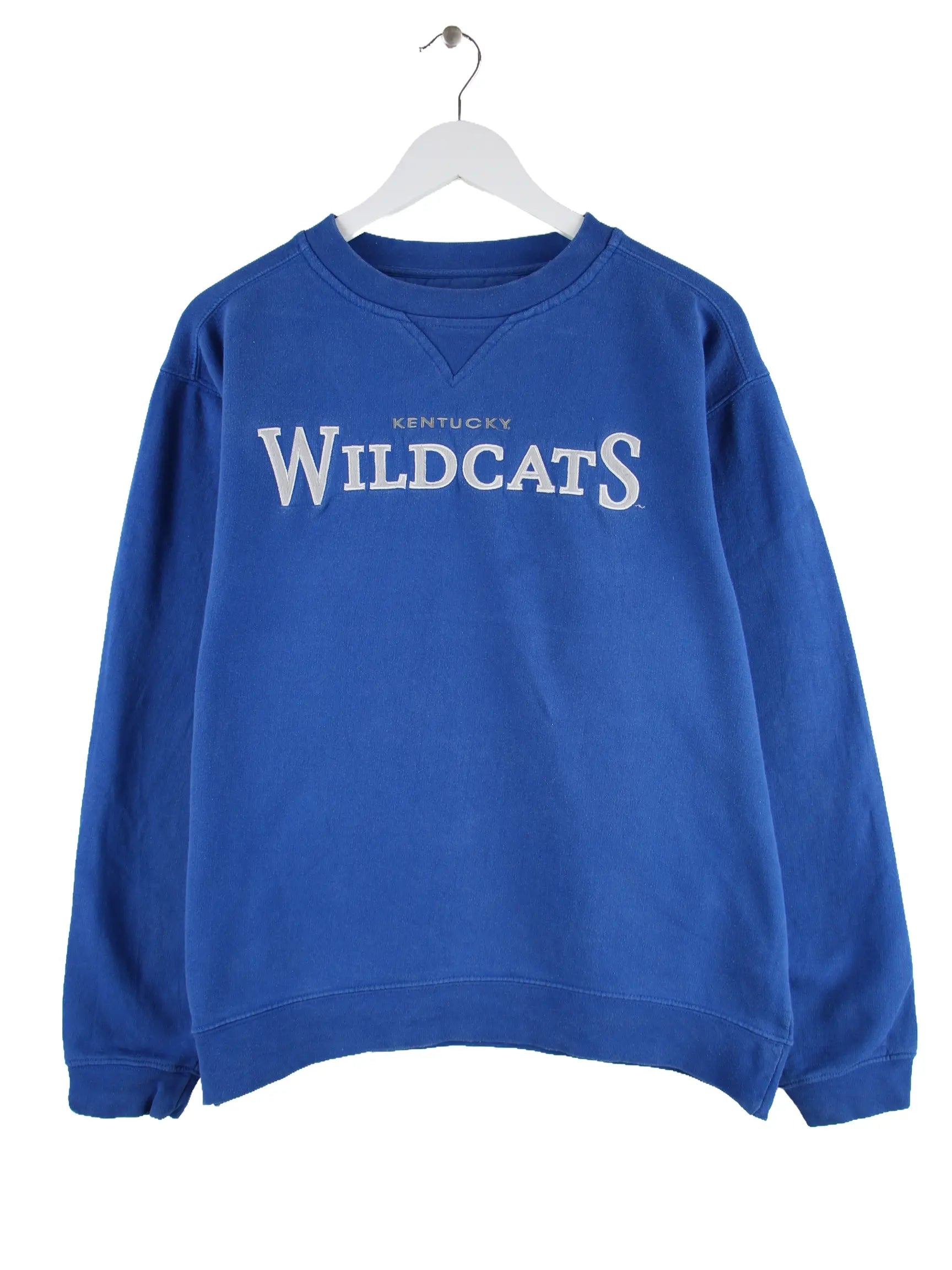Vintage Sweater in Größe M. Er ist aus einer Baumwollmischung und in Blau vorrätig.