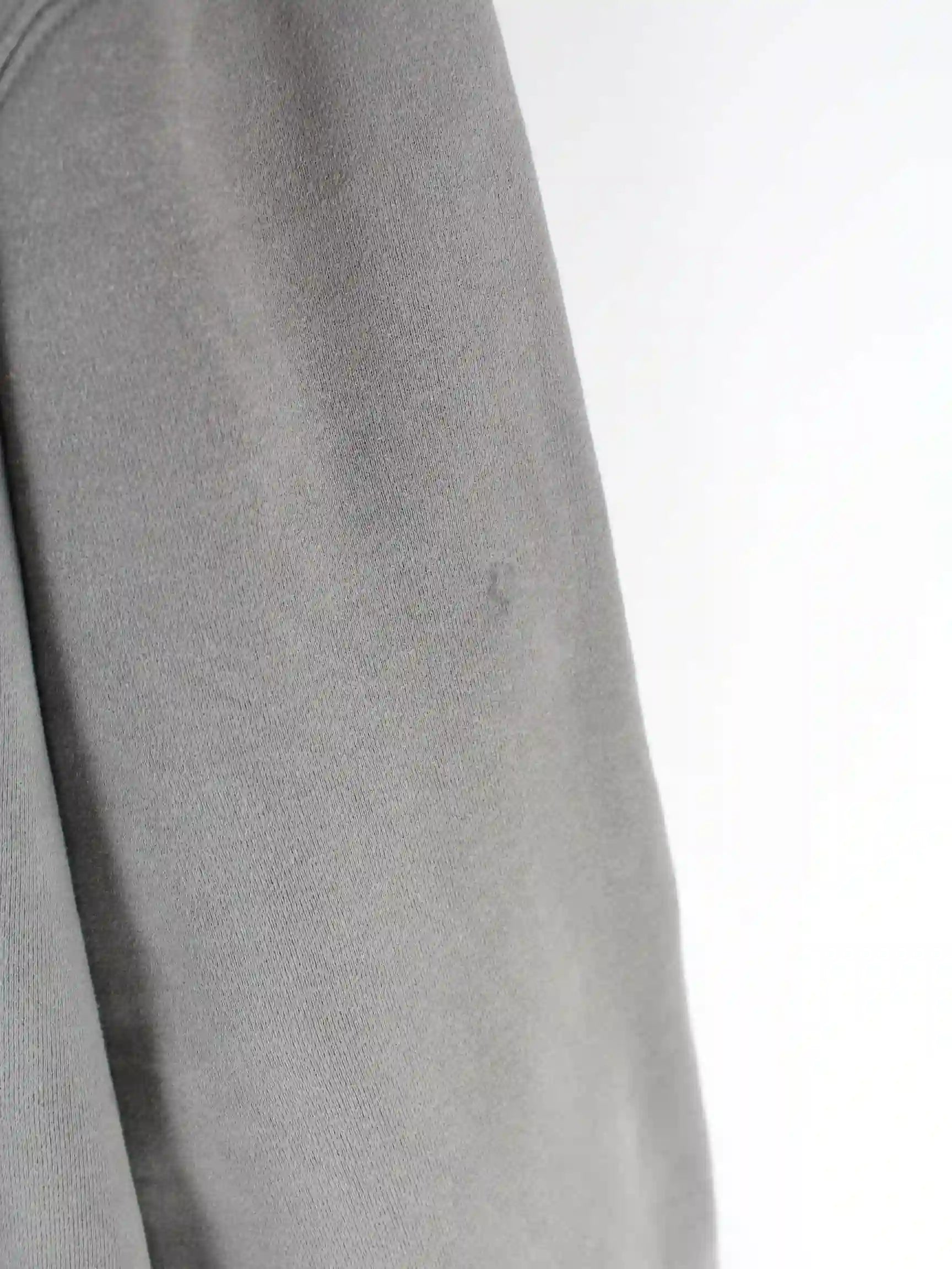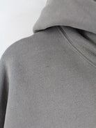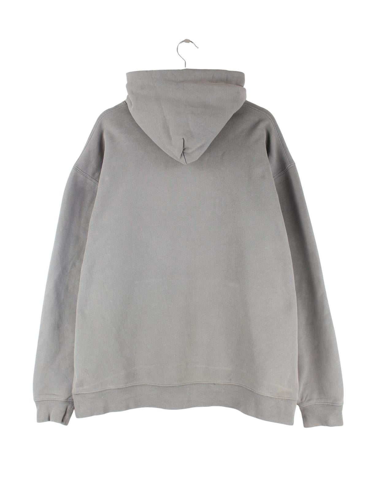 Grauer Vintage Hoodie mit Stickereien in Größe XL. Er ist aus einer Baumwollmischung hergestellt und in gutem Zustand bei uns vorrätig.