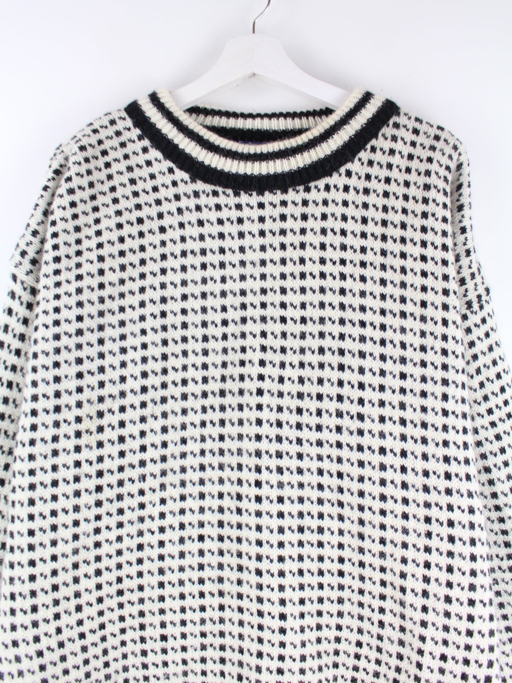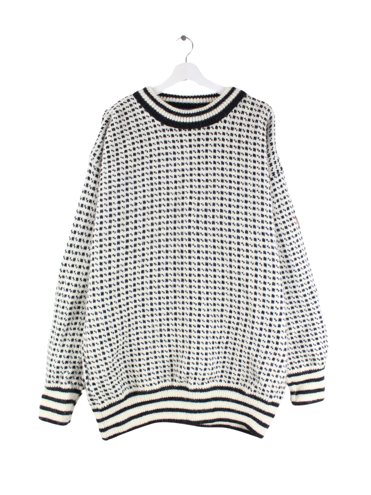 Weißer Vintage Pullover in Größe 3XL. Er ist aus Wolle gefertigt und in sehr gutem Zustand bei uns vorrätig.