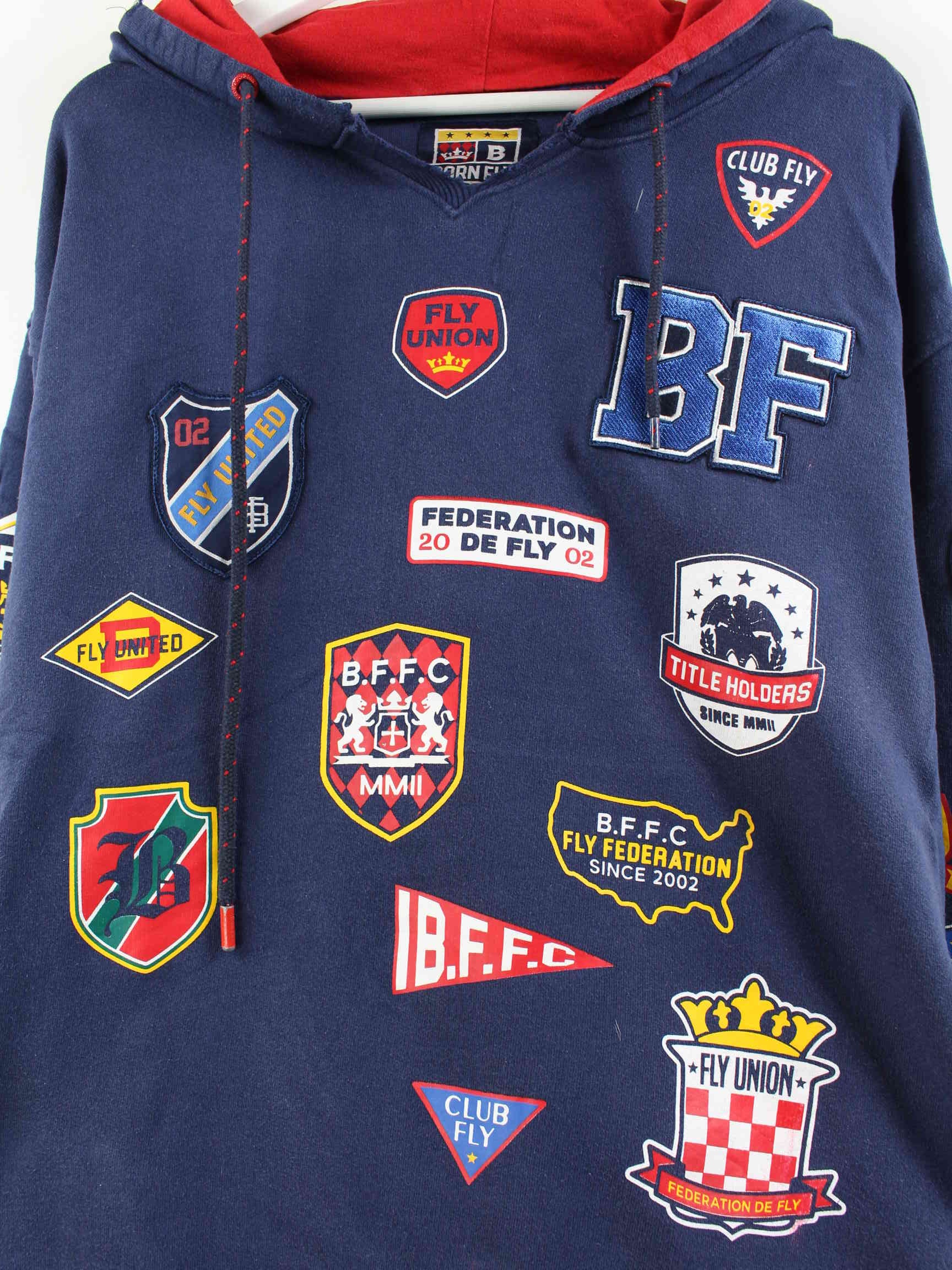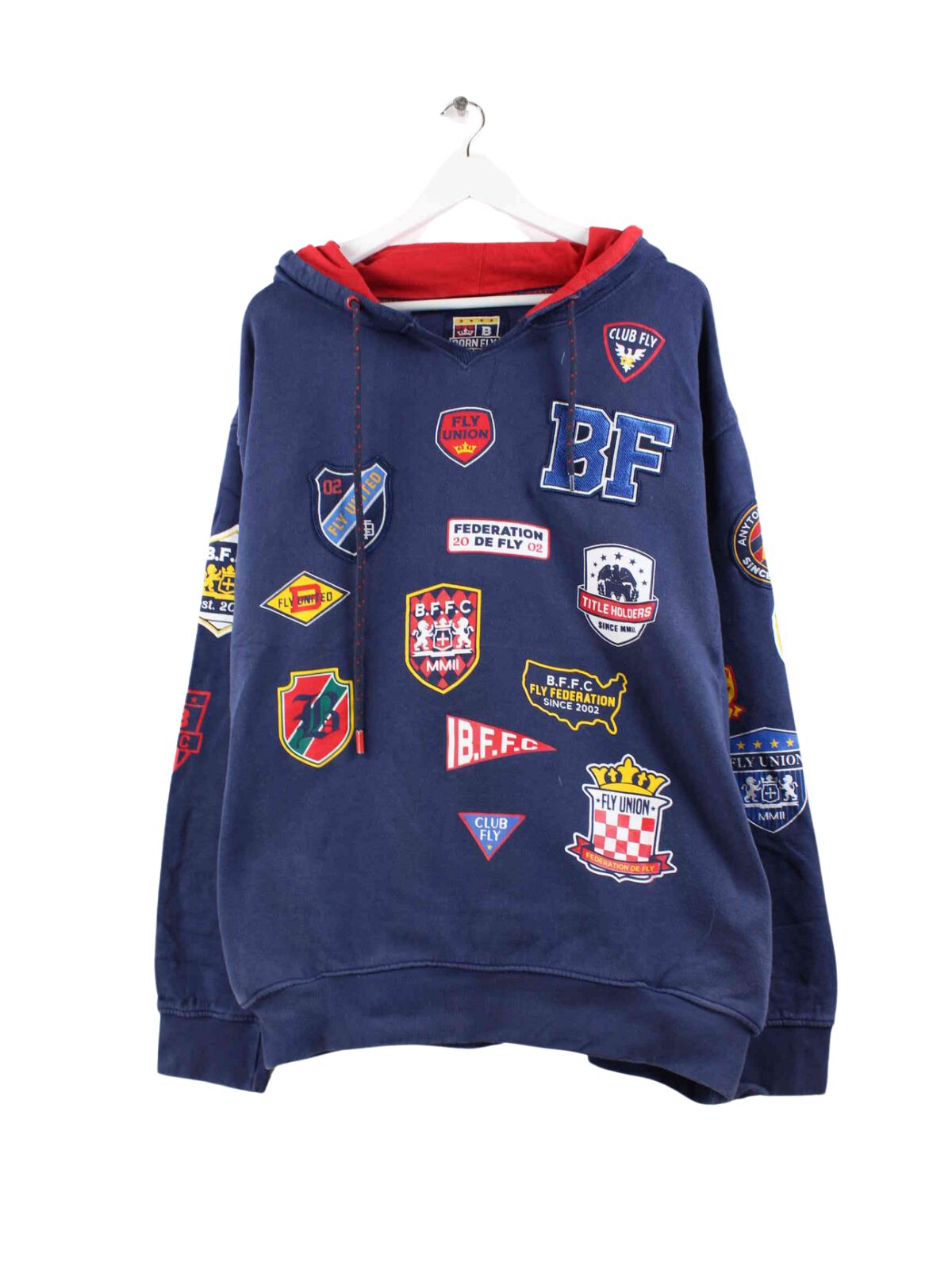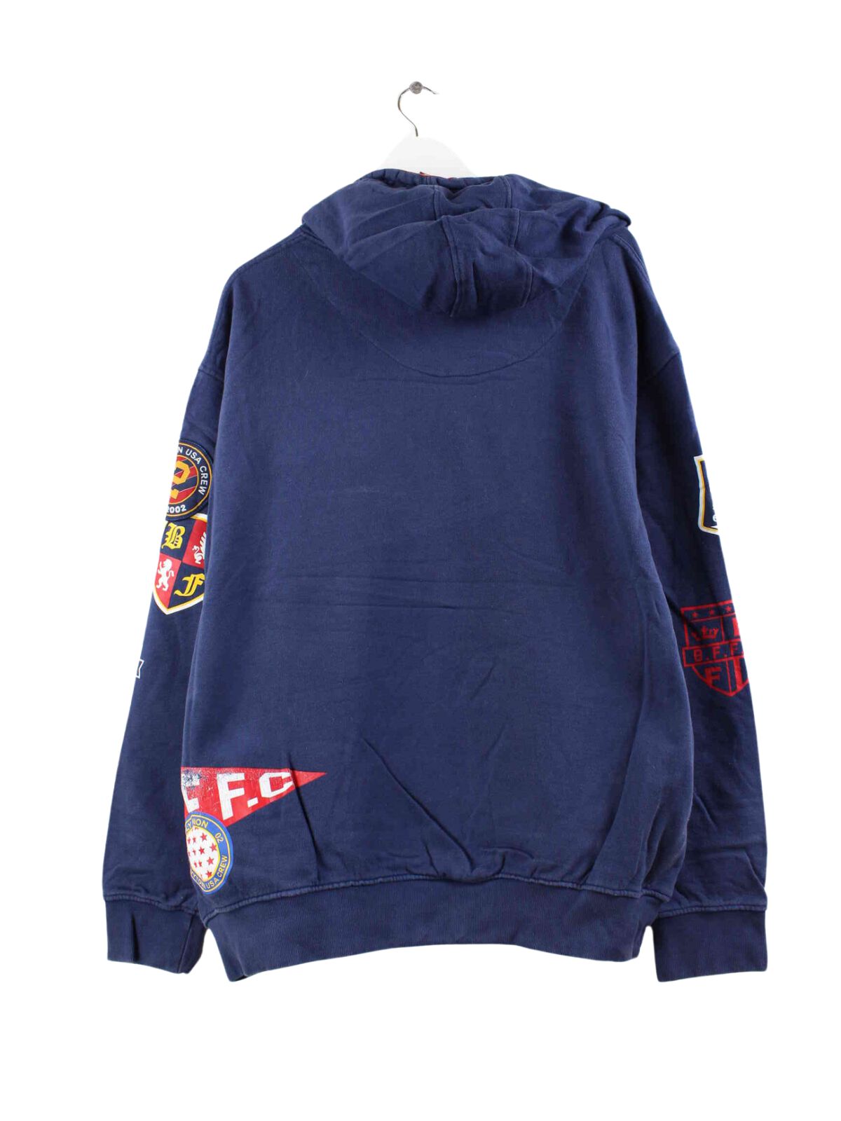 Blue vintage hoodie in size XXL. It is made of a cotton blend and is in good condition.