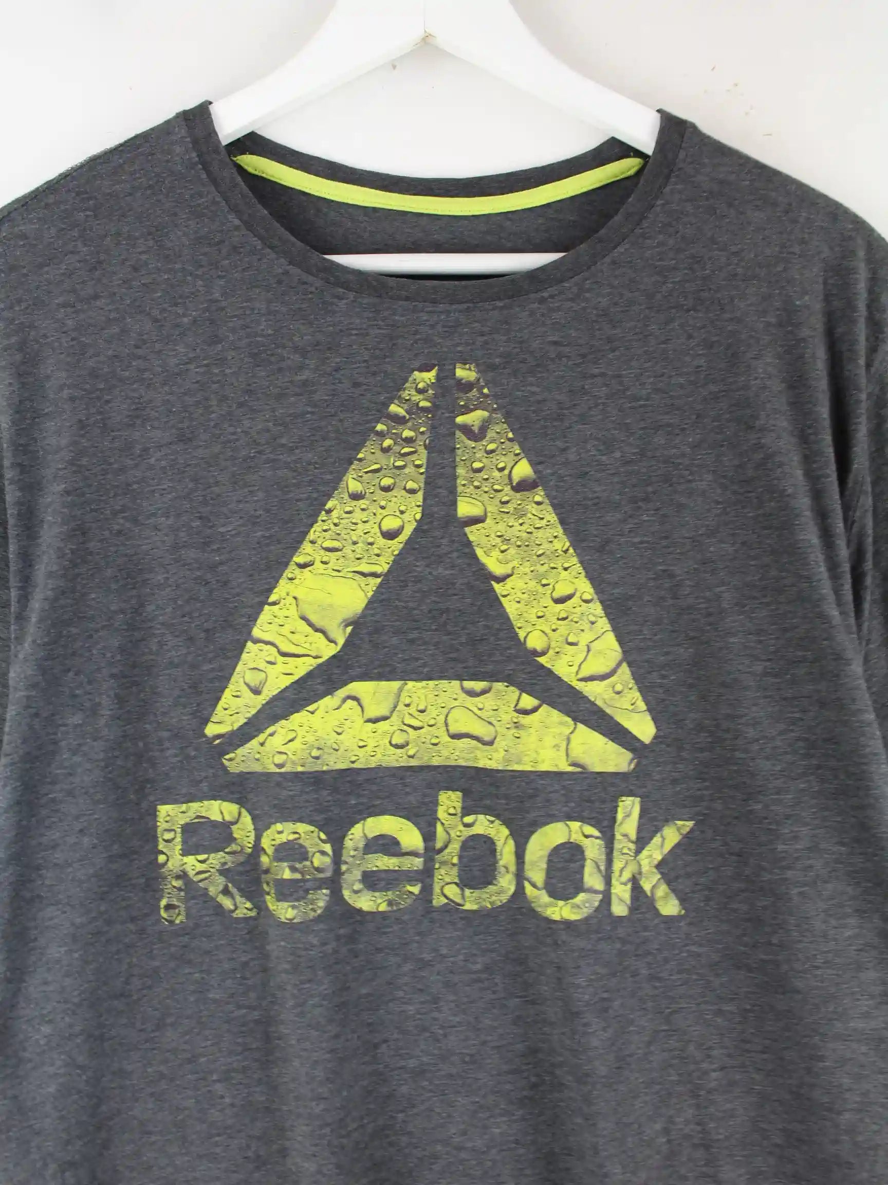 Reebok T-Shirt in Größe L. Es ist aus Baumwolle produziert und in Grau im Bestand. Mit chiquem Print.