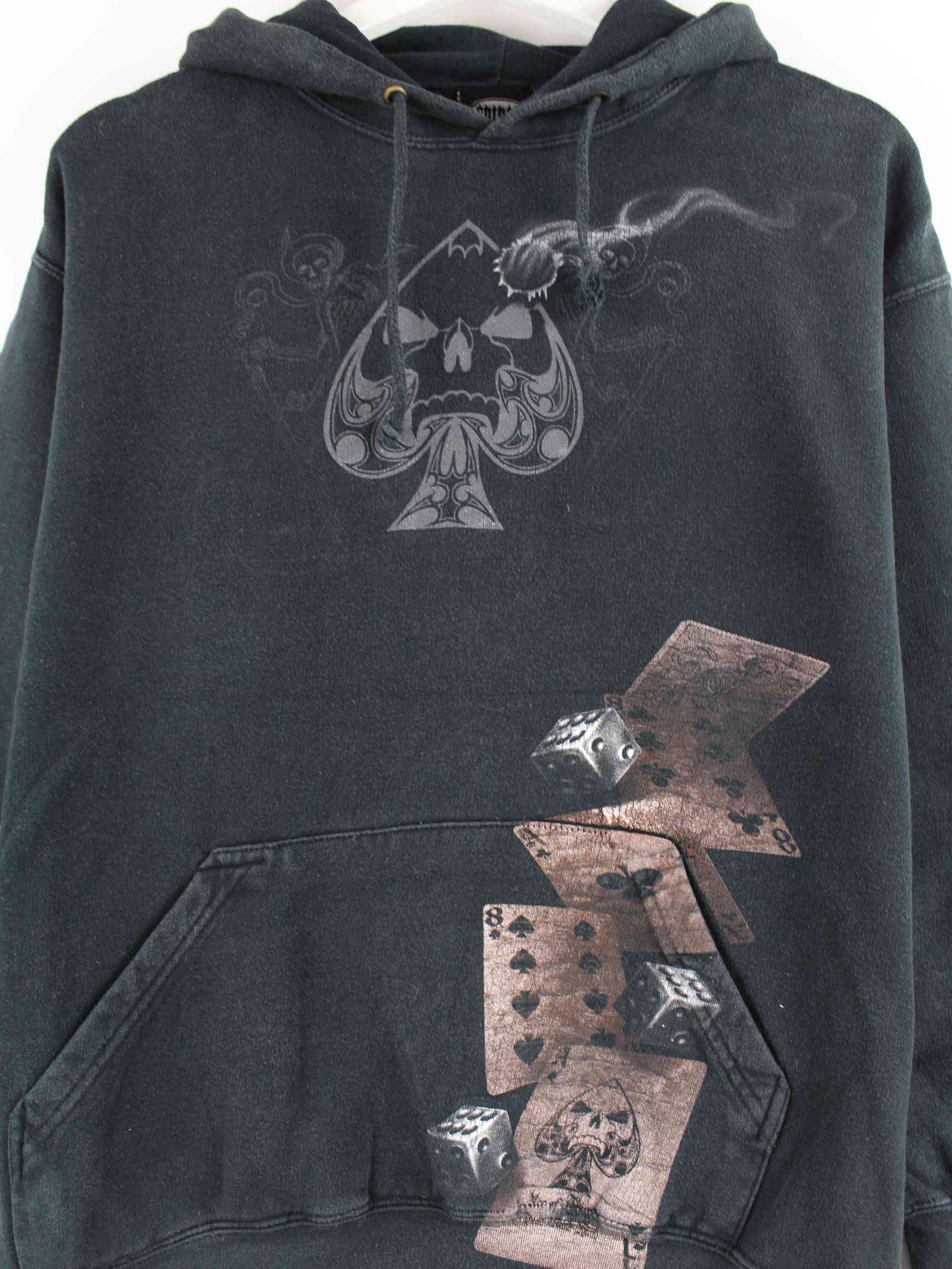 Black vintage hoodie from the early 2000s in size XS. It is made from a cotton blend and is in very good condition. With a chic crazy print.