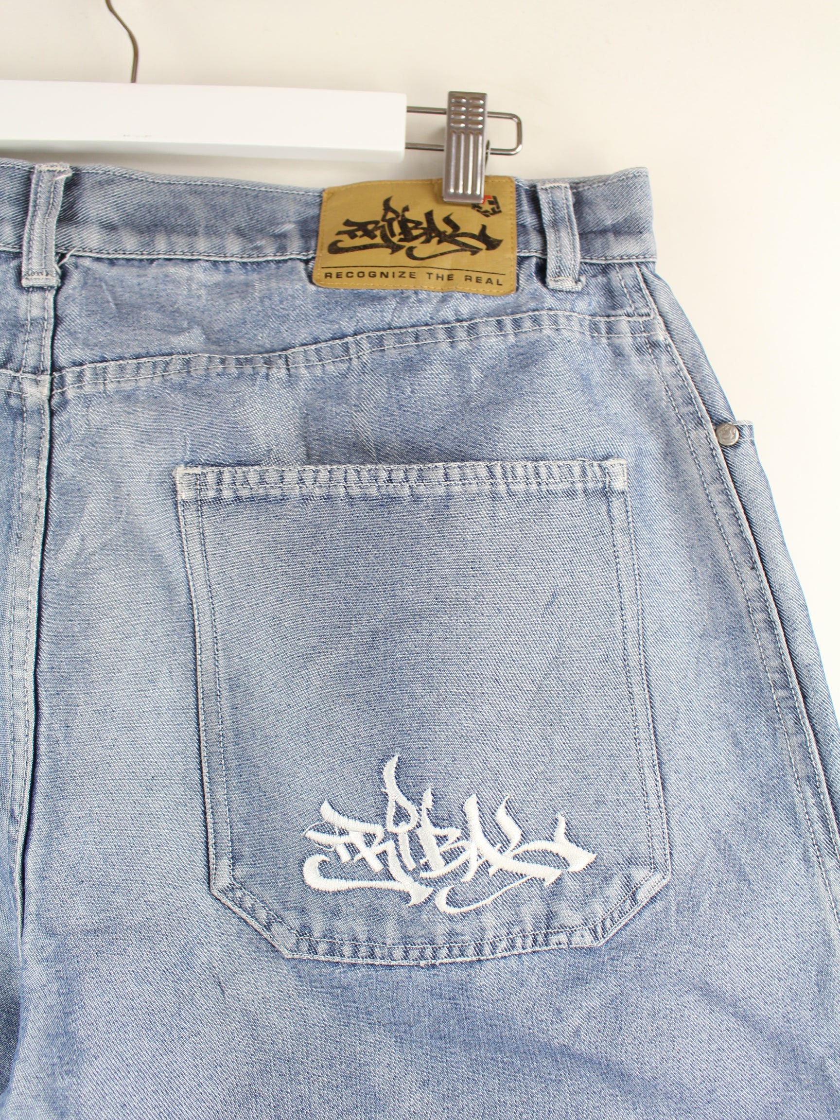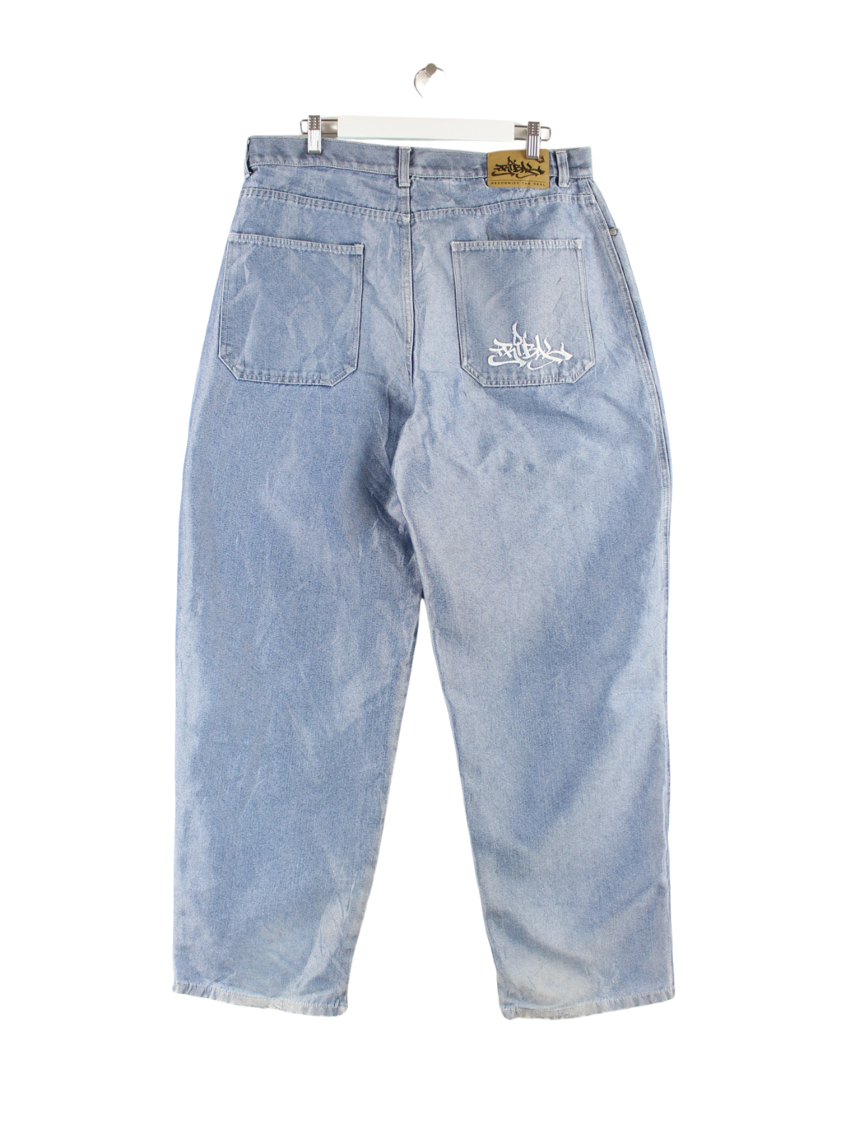 Vintage y2k Tribal Embroidered Baggy Jeans Blue W38 L34