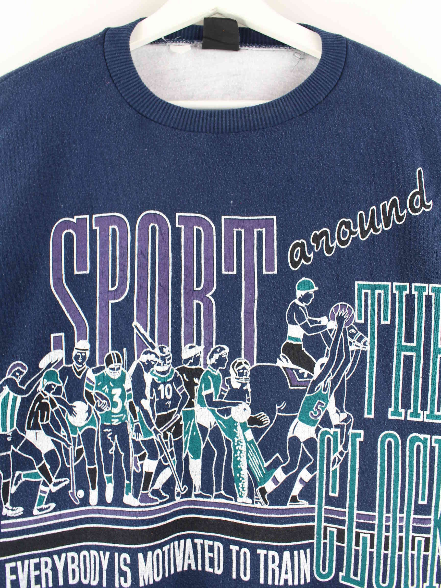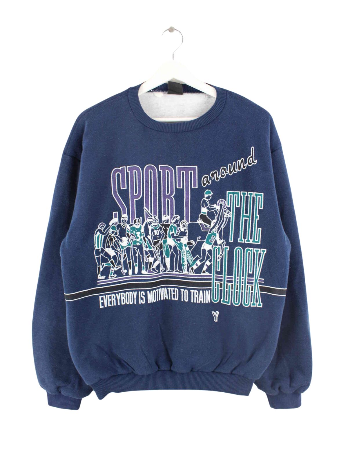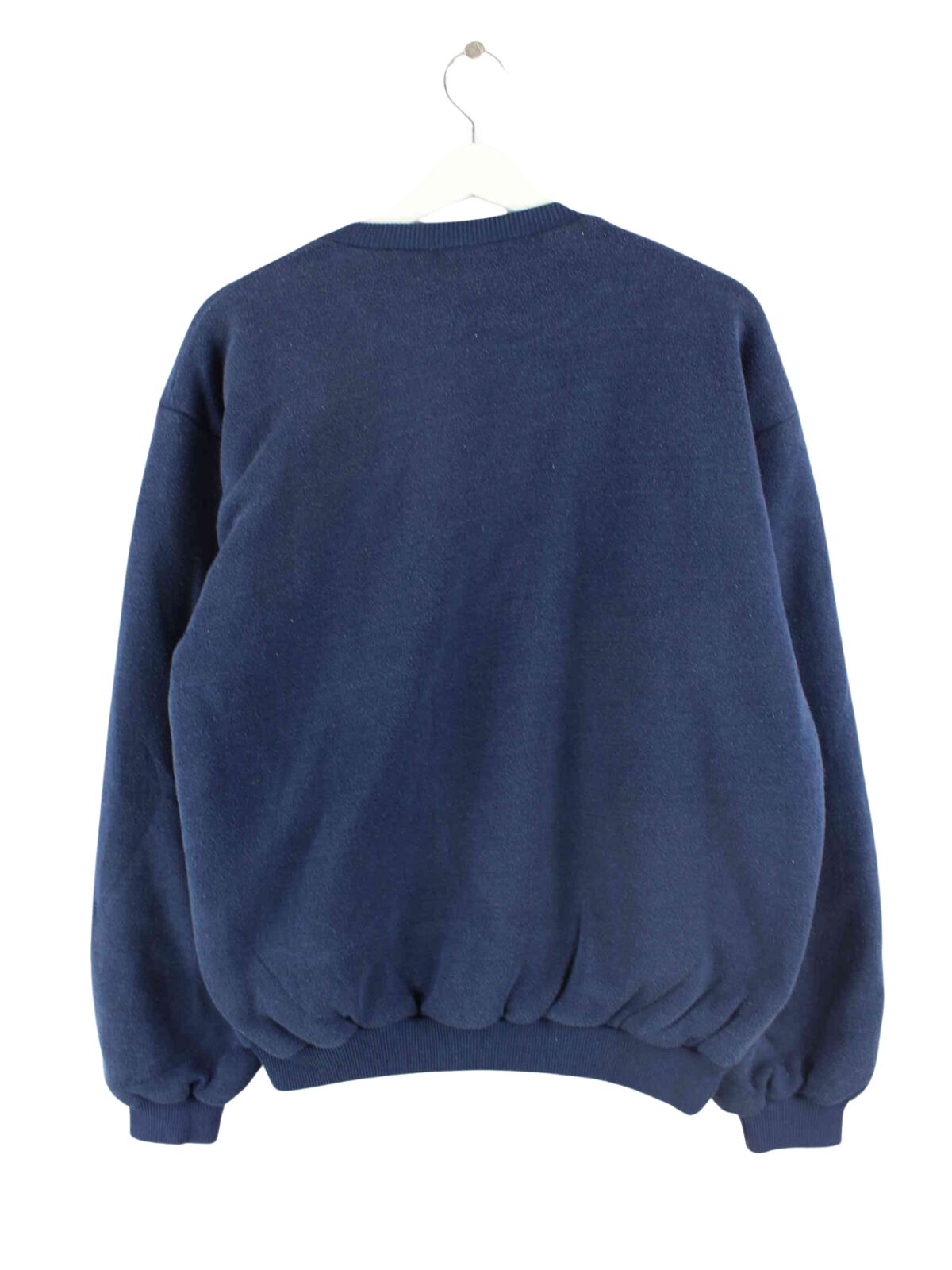 Vintage sweater in size M from the early 2000s. It's made from a cotton blend and is stocked in blue. With a great vintage print.