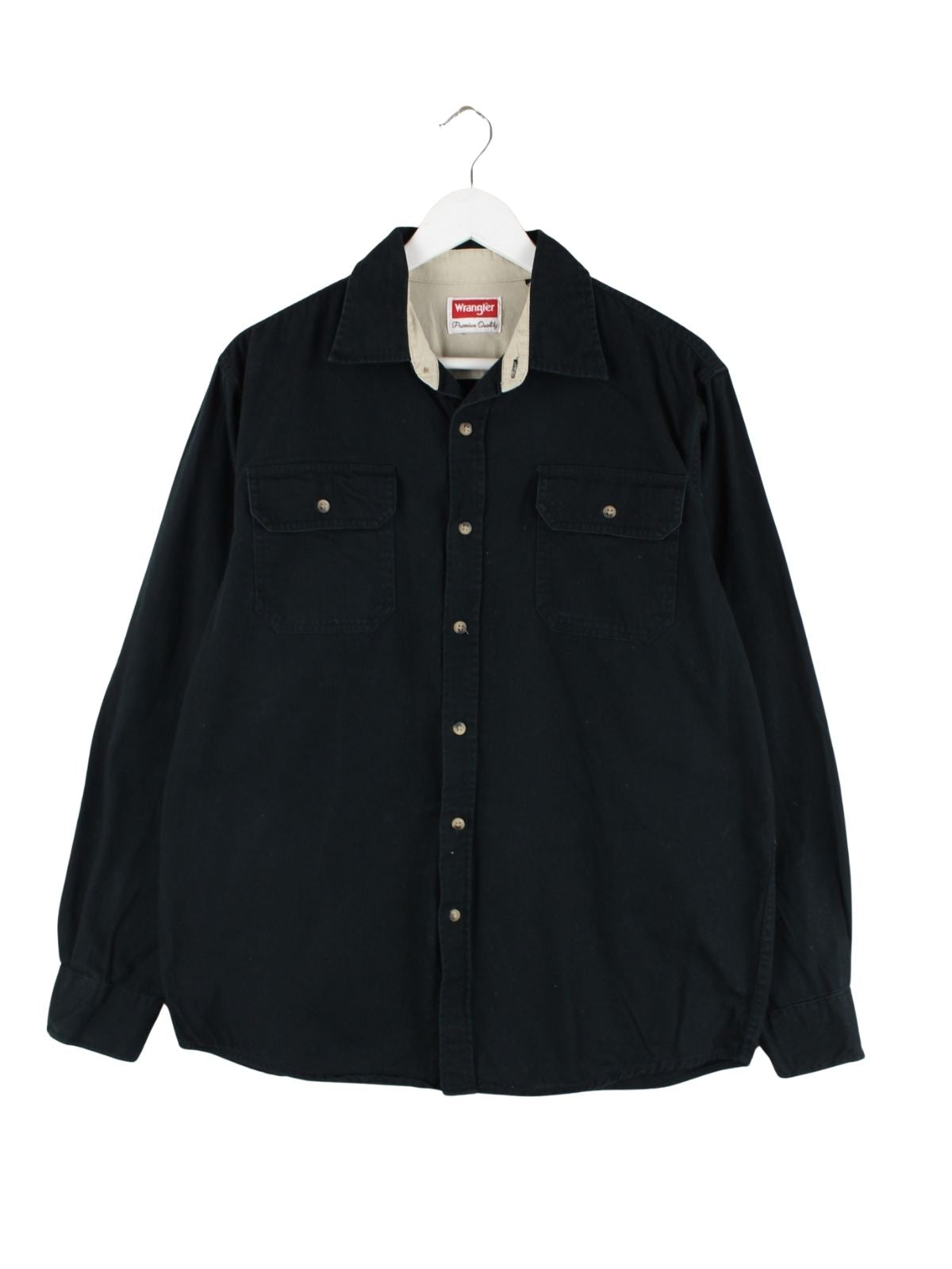 Schwarzes Freizeit Hemd vom Brand Wrangler in Größe M. Es ist aus Baumwolle gefertigt und in sehr gutem Zustand bei uns zu bekommen.