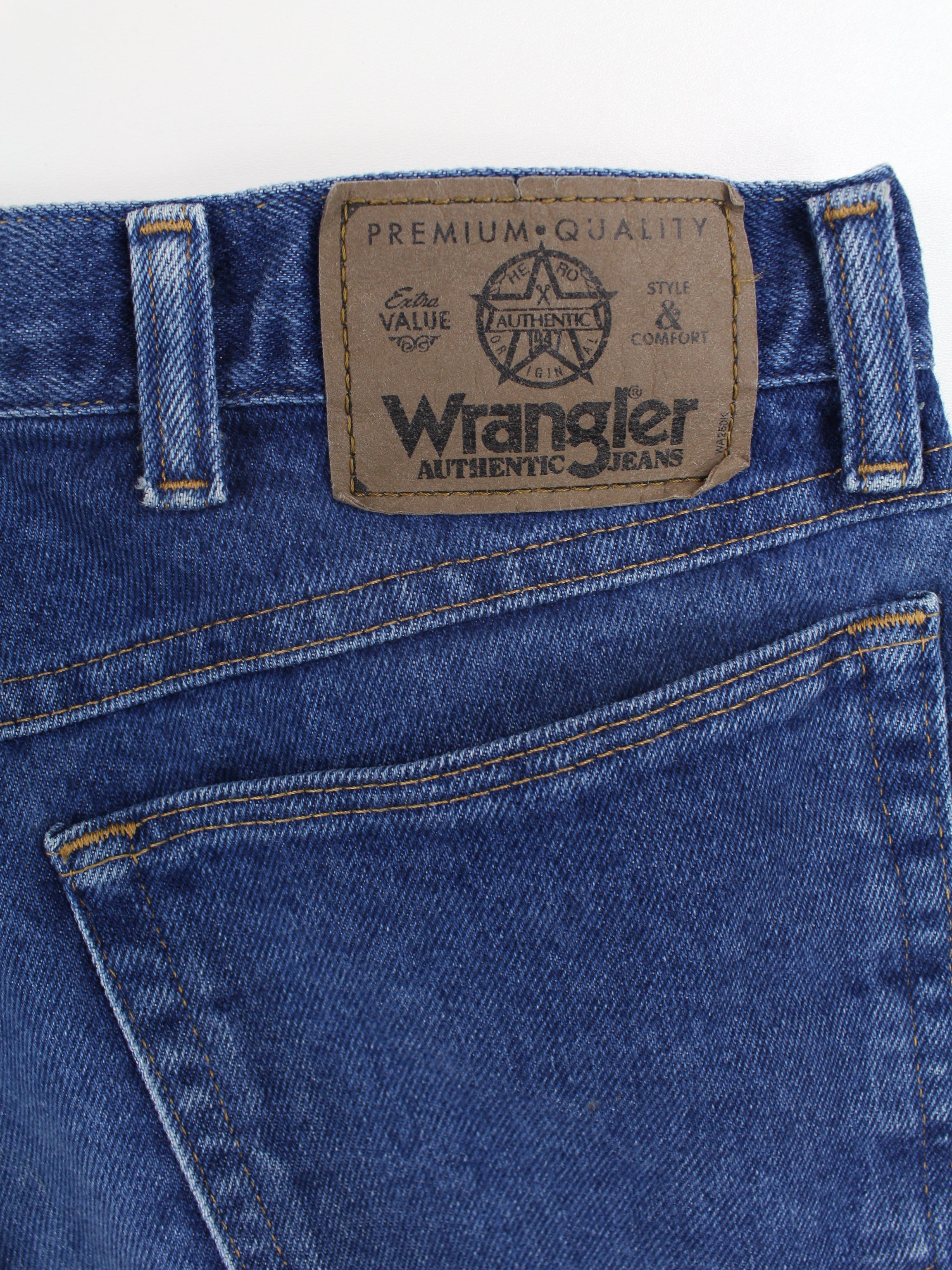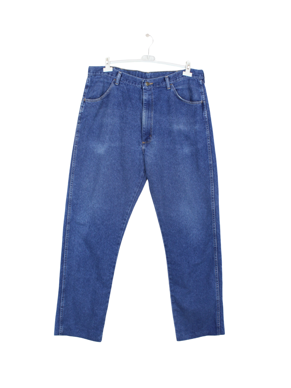 Blue Wrangler denim pants.