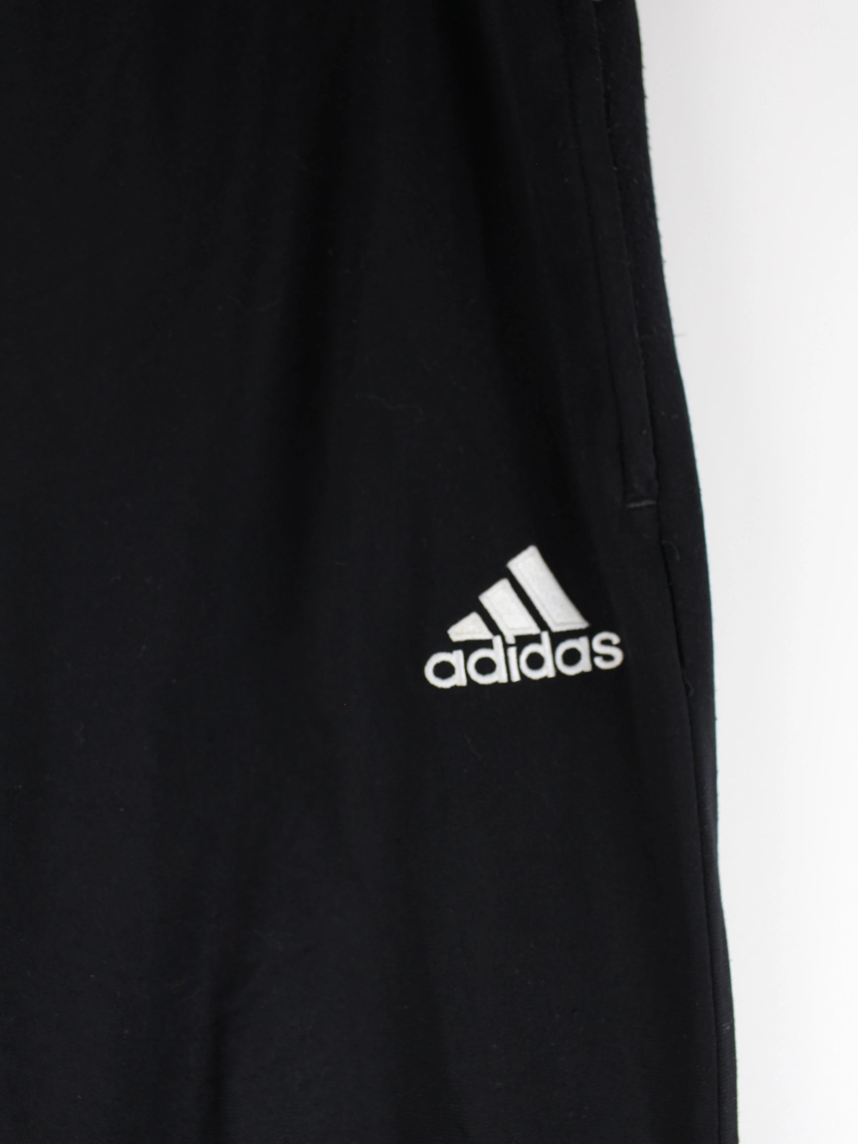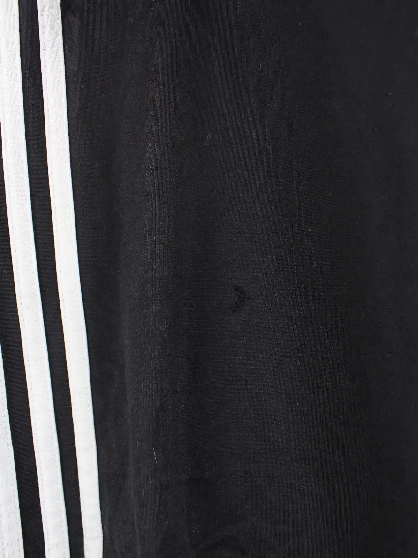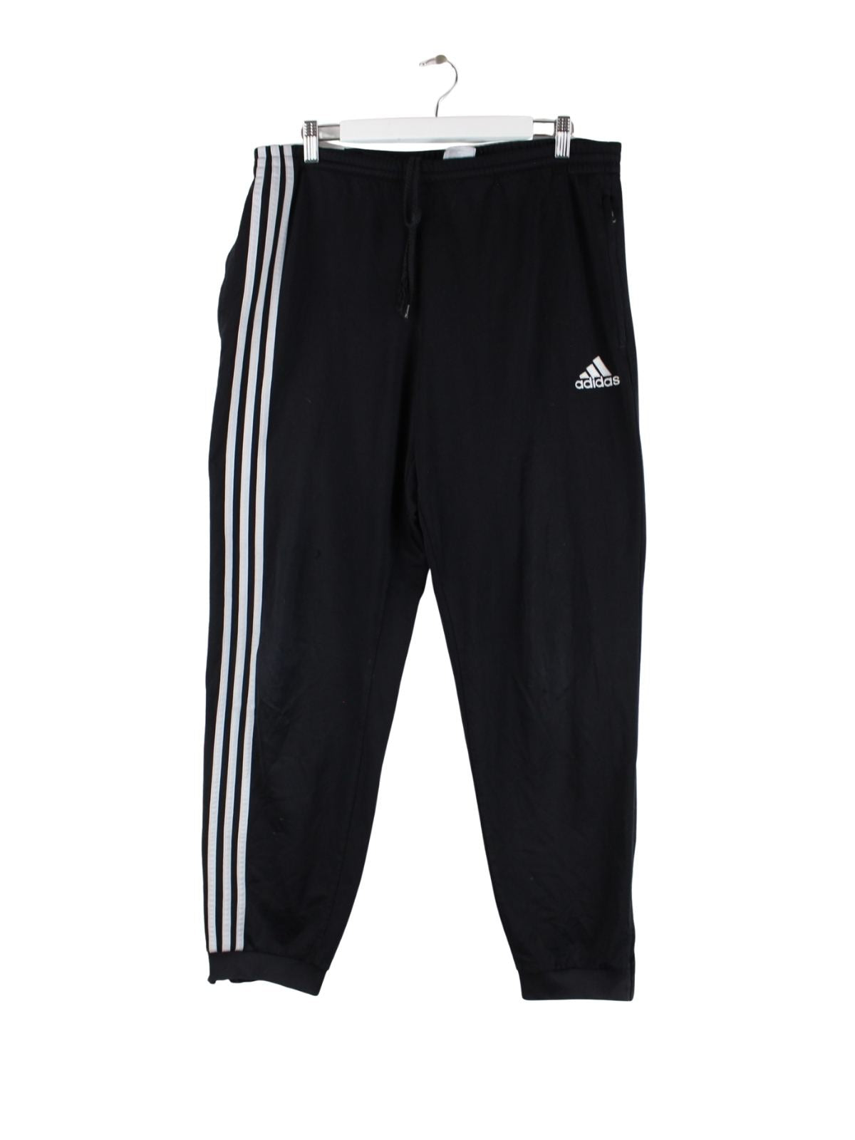 Schwarze Track Pants des Labels Adidas in Größe XL. Sie sind aus Synthetik angefertigt. Den Zustand würden wir als 'In Ordnung' bezeichnen (vergl. Bilder).