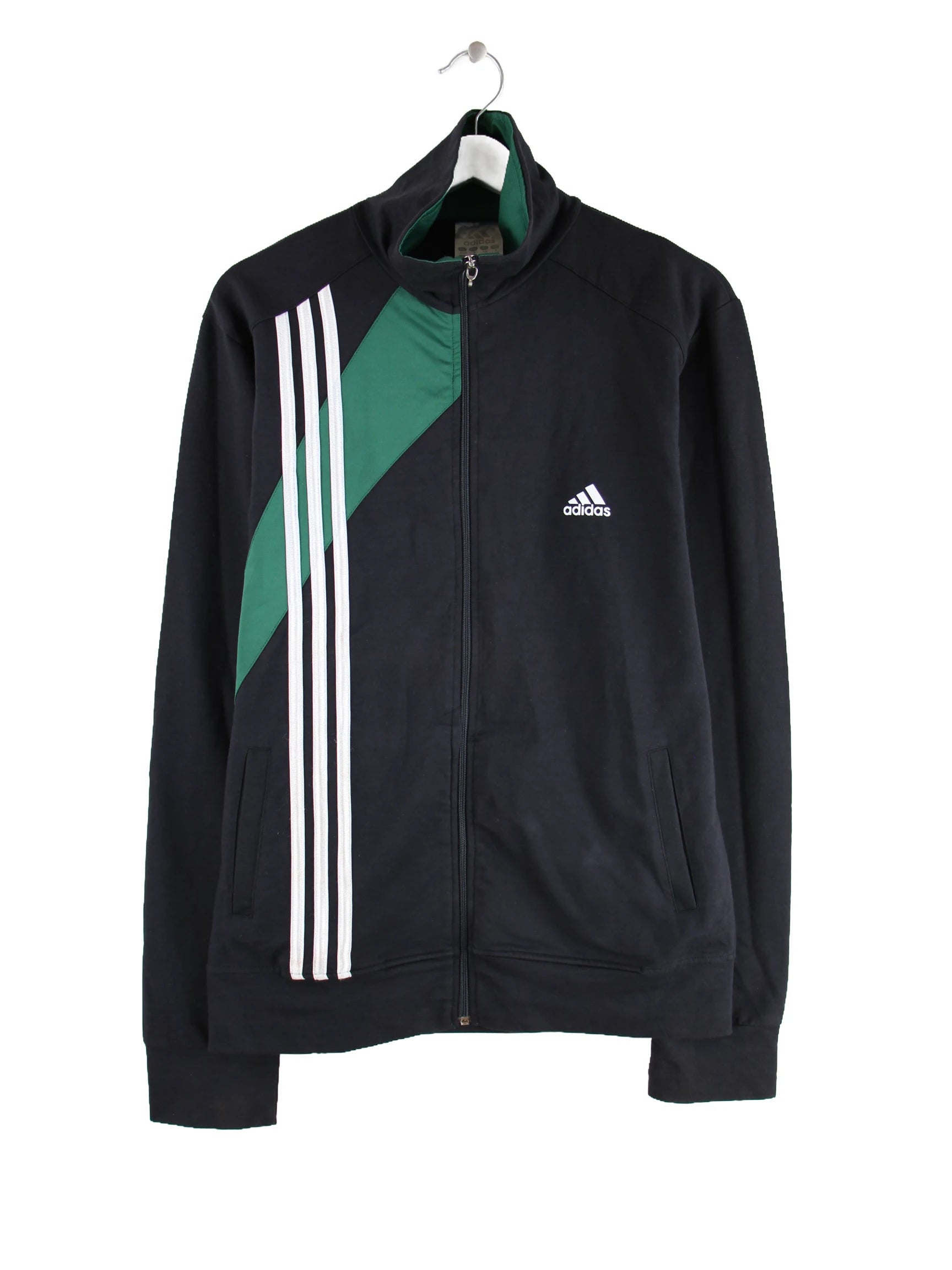 Trainingsjacke des Labels Adidas in Größe M. Sie ist aus Synthetik produziert und in Schwarz in Stock.