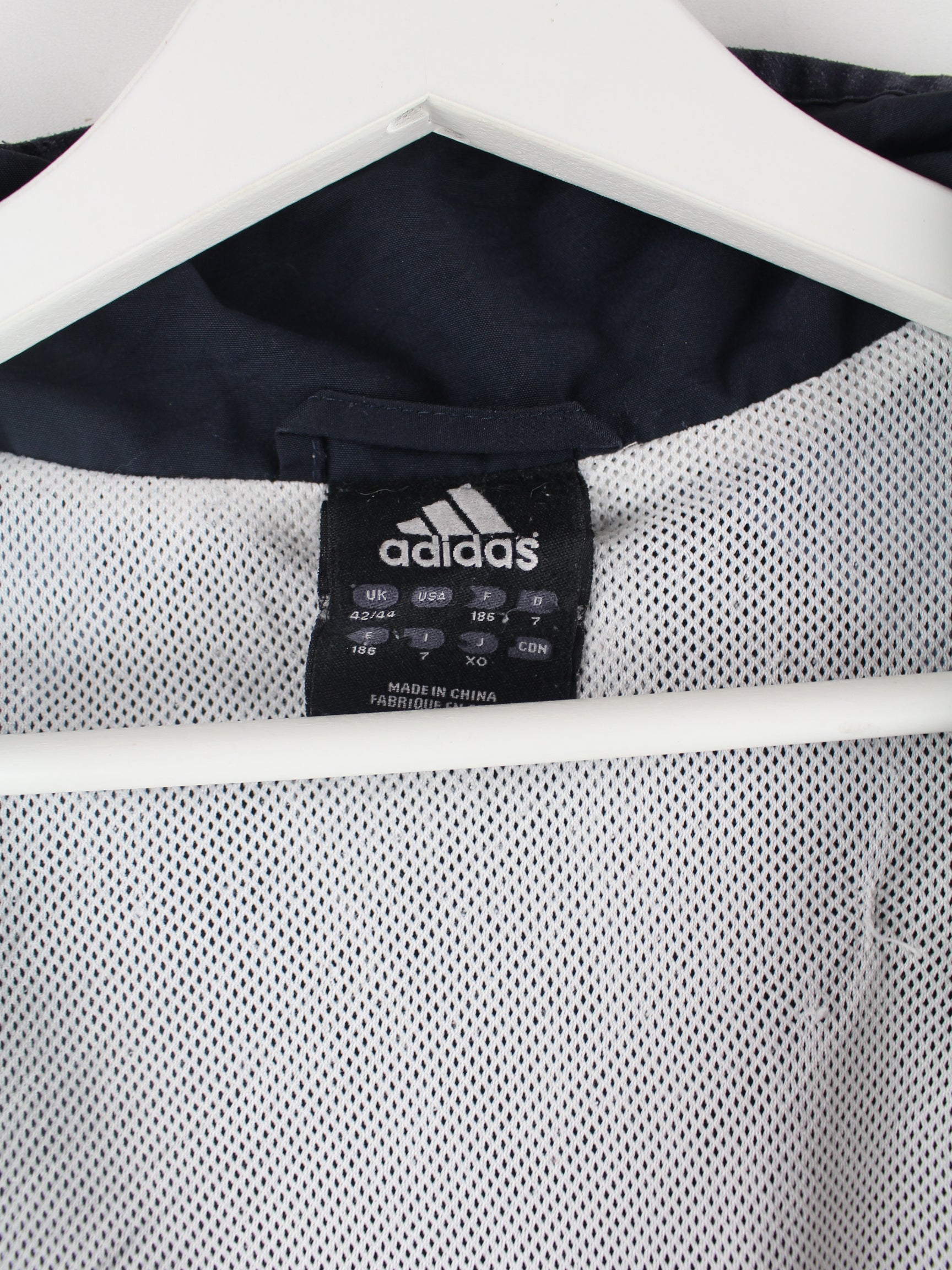 Trainingsjacke vom Brand Adidas in Größe L. Sie ist aus Synthetik hergestellt und in Weiß bei uns zu bekommen.