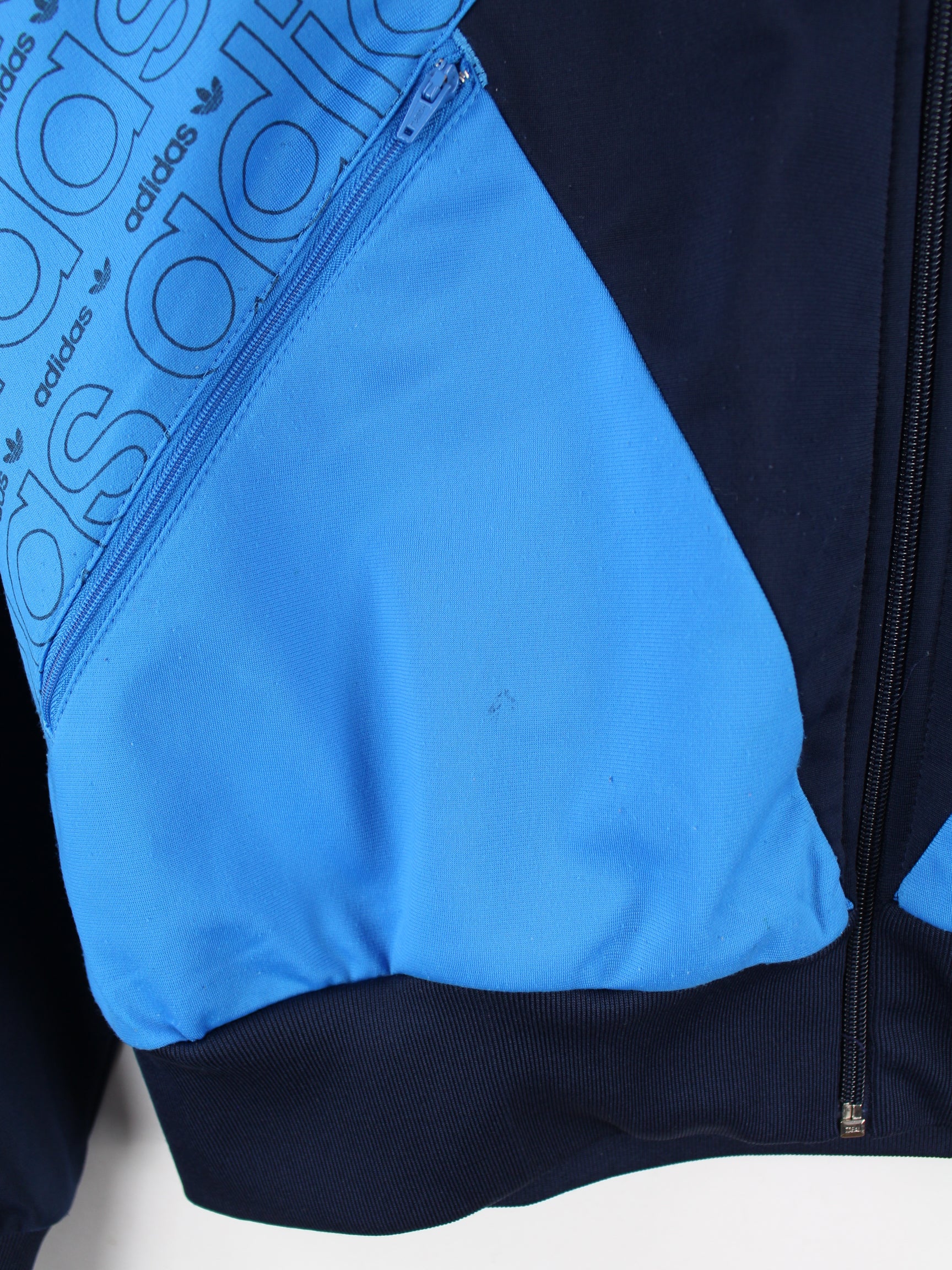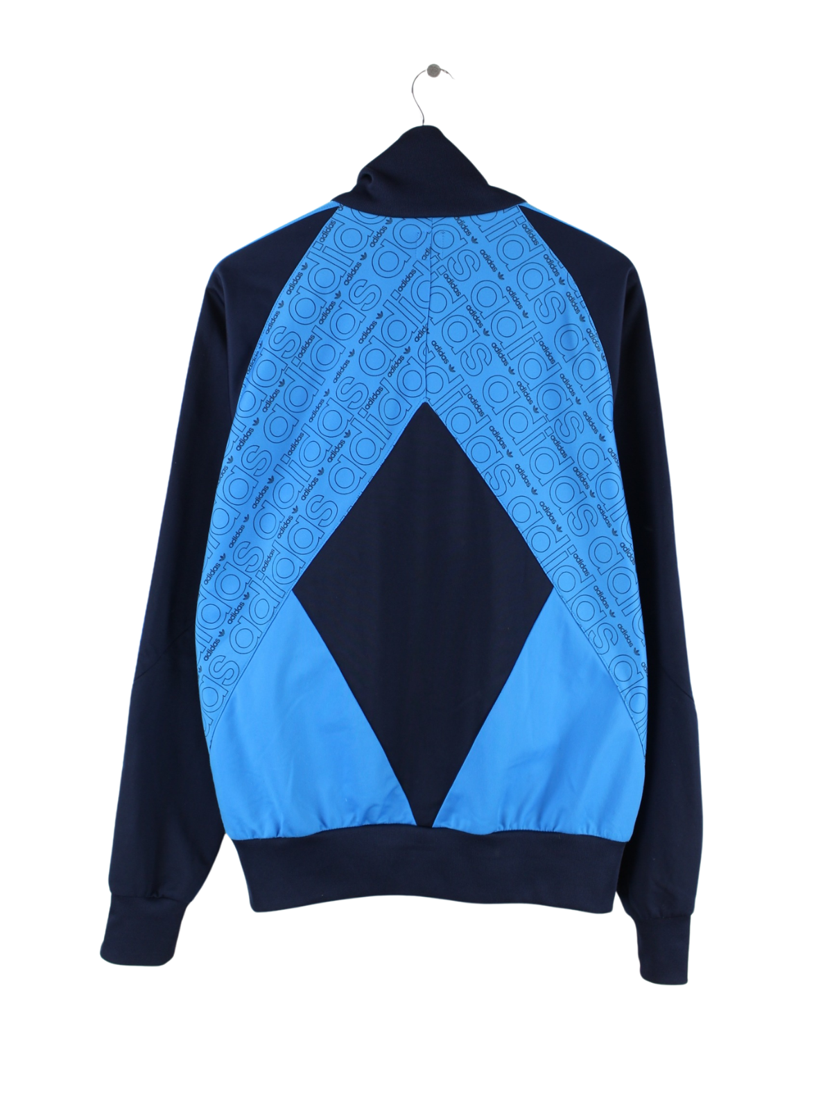 Trainingsjacke aus dem Hause Adidas in Größe L. Sie ist aus Synthetik gefertigt und in Blau zu haben.