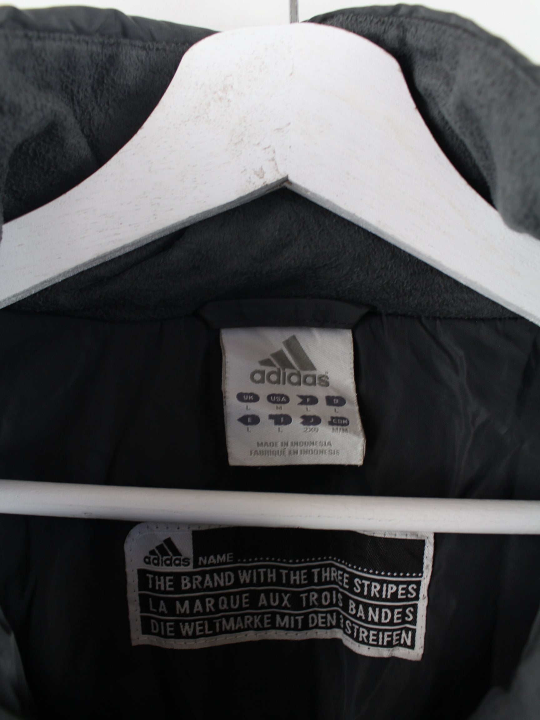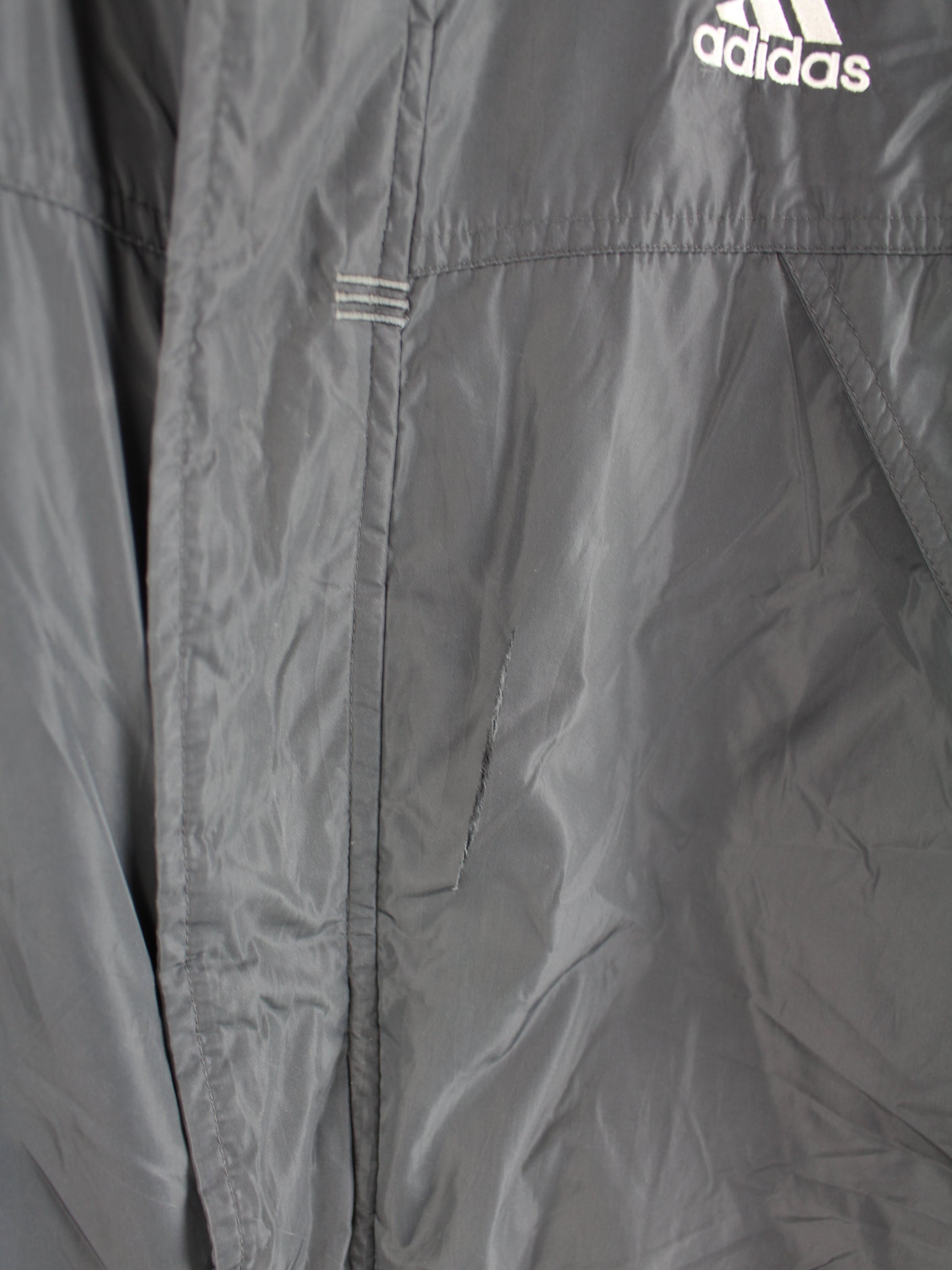 Graue Jacke vom Brand Adidas in Größe L. Sie ist aus Synthetik gemacht. Den Zustand würden wir als 'In Ordnung' bezeichnen (vergl. Bilder).