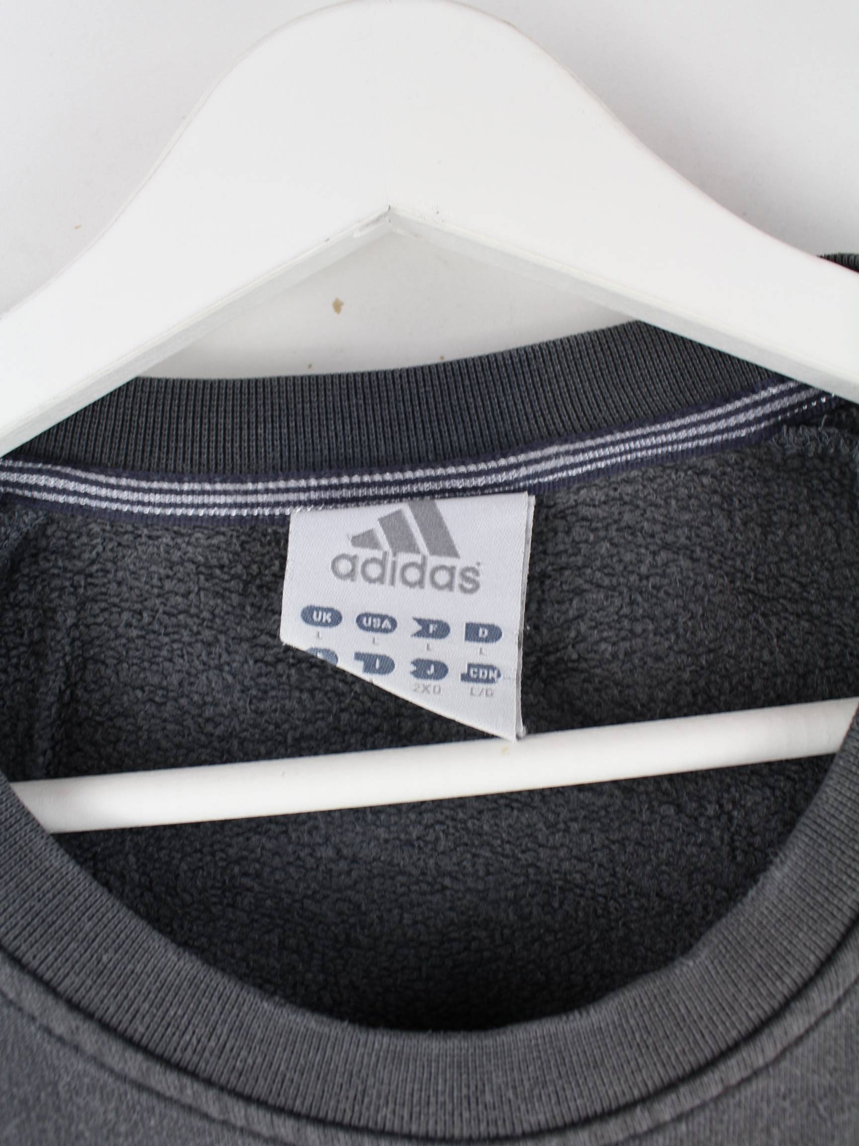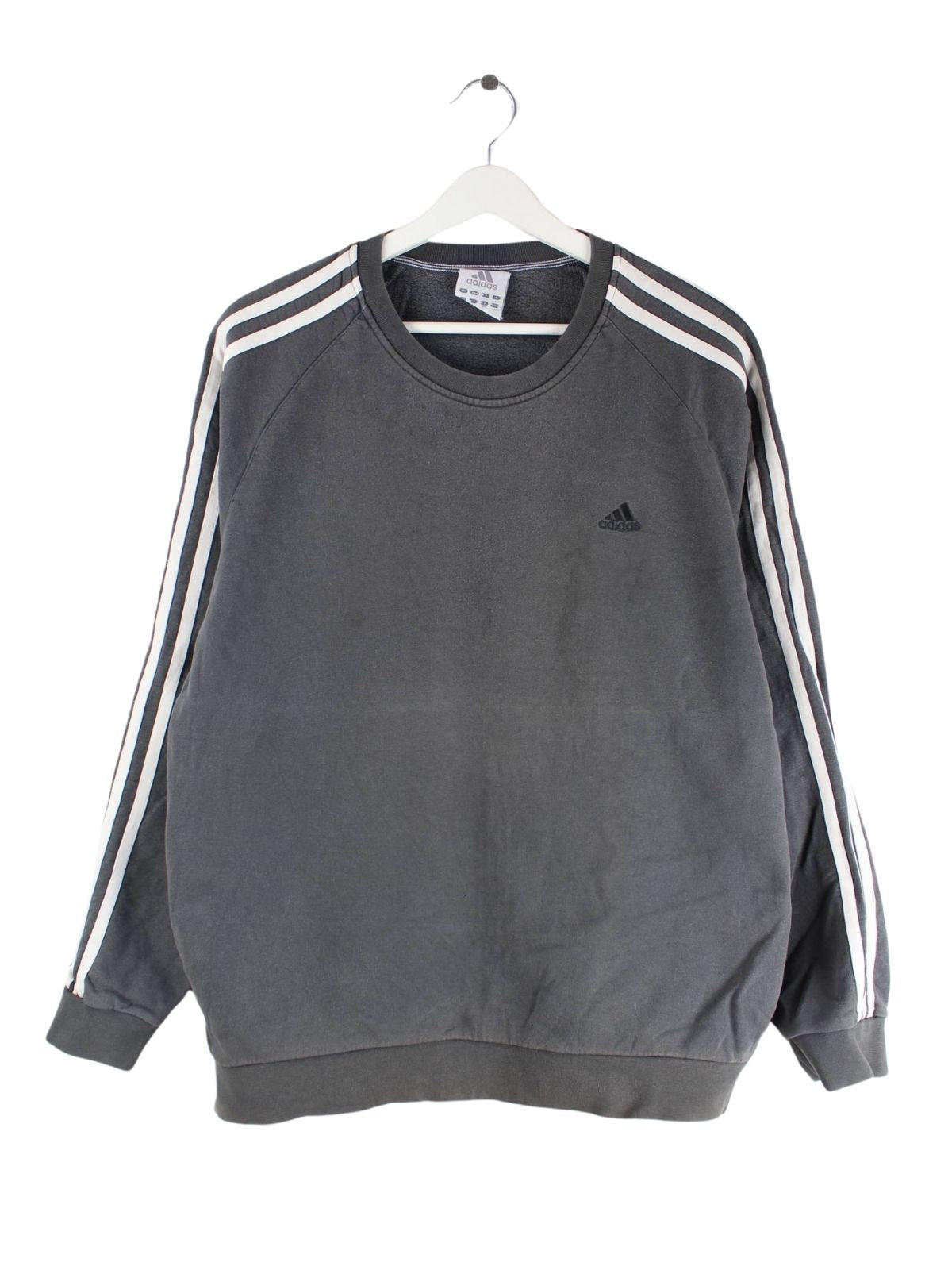 Grauer Sweater der Marke Adidas in Größe L. Er ist aus einer Baumwollmischung hergestellt und in gutem Zustand im Angebot.