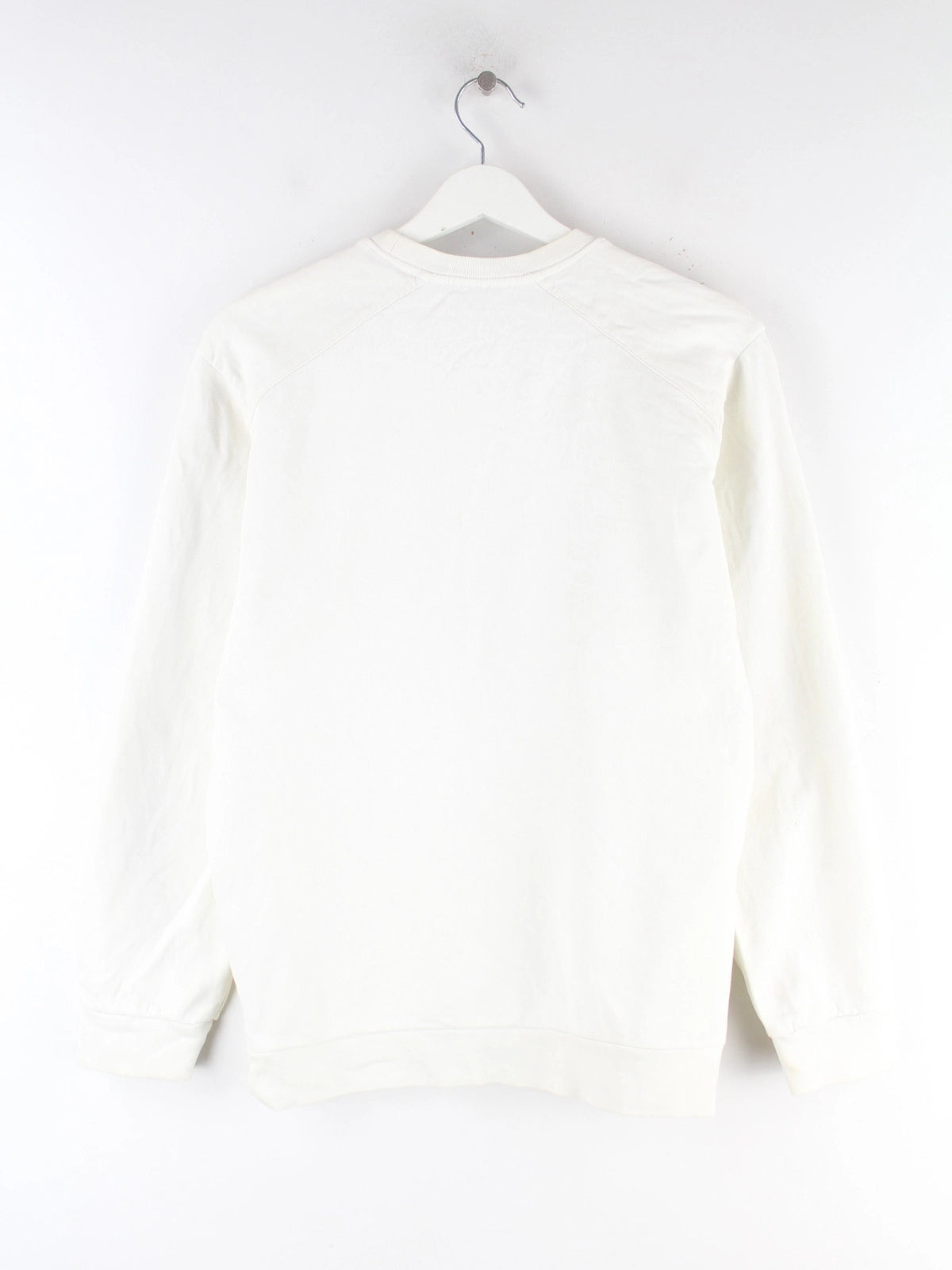 Weißer Sweater mit Stickereien aus dem Hause Adidas in Größe S. Er ist aus einer Baumwollmischung gefertigt und in gutem Zustand auf Lager.