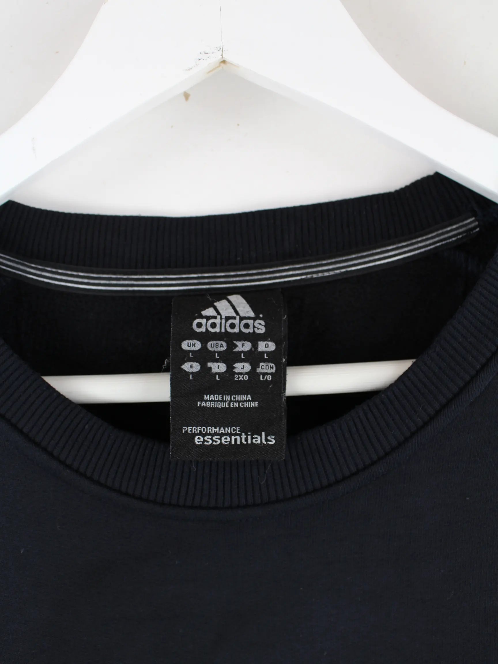 Sweater aus dem Hause Adidas in Größe L. Er ist aus einer Baumwollmischung hergestellt und in Schwarz zu haben.