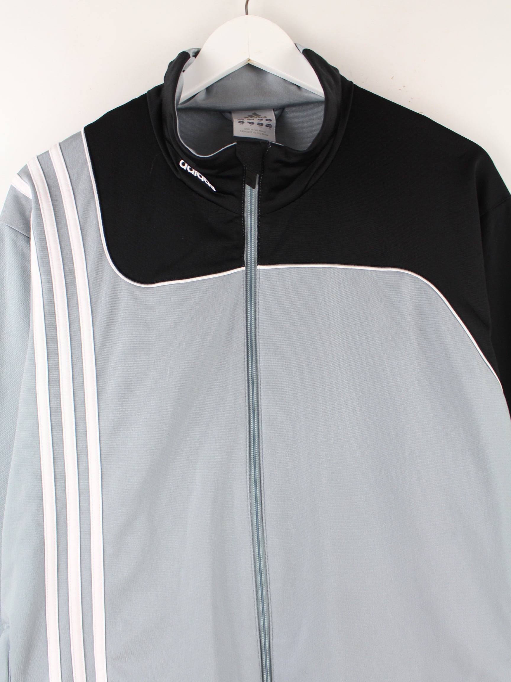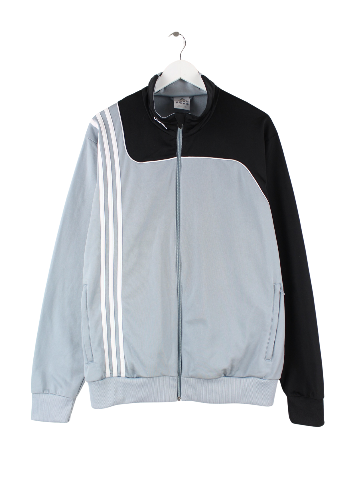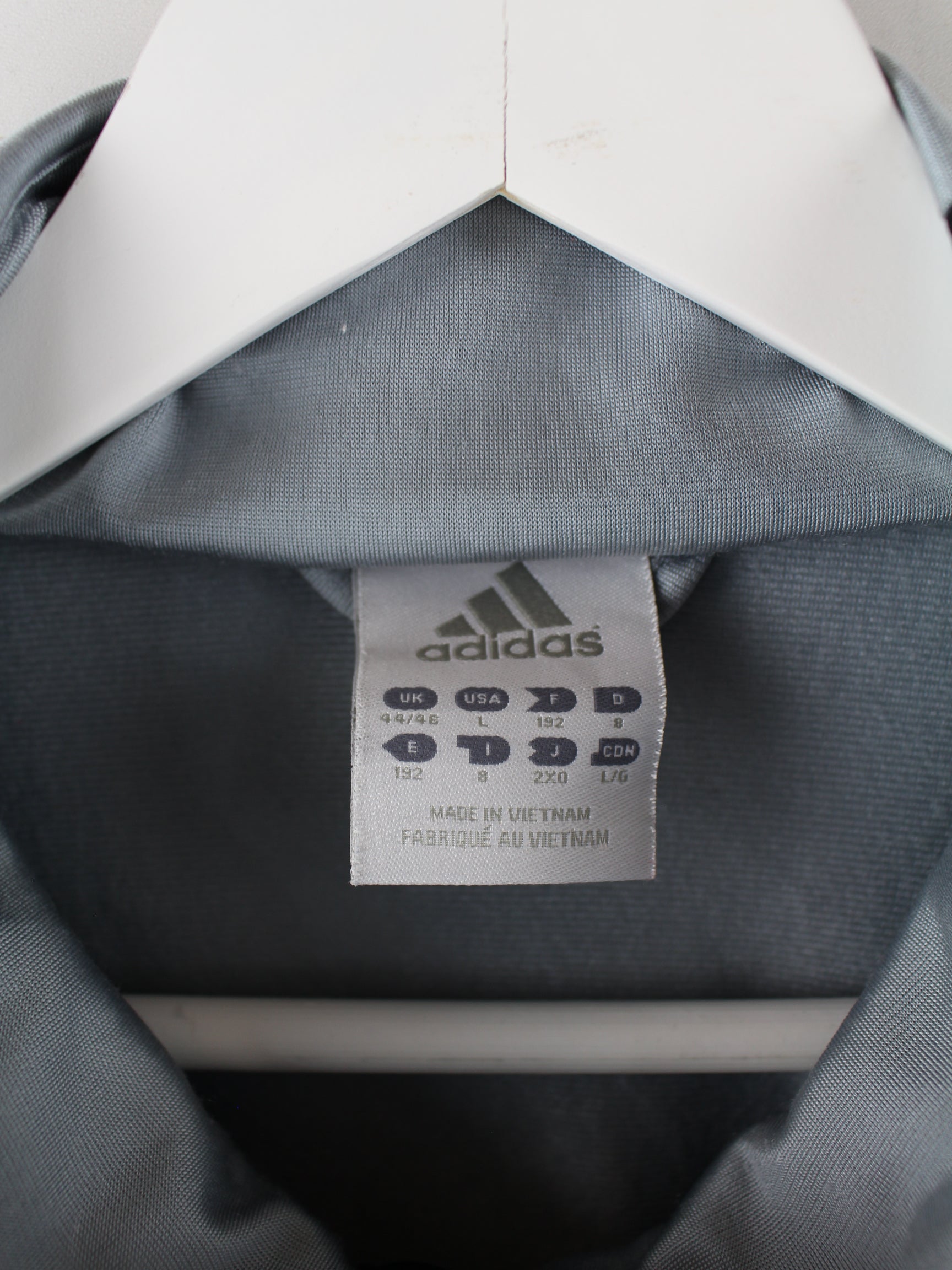 Graue Trainingsjacke aus dem Hause Adidas in Größe L. Sie ist aus Synthetik und in sehr gutem Zustand auf Lager.