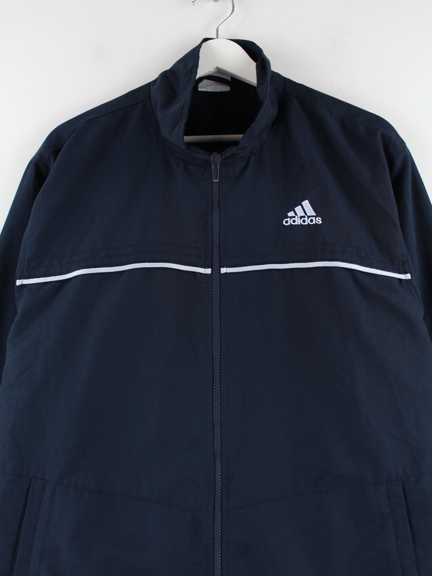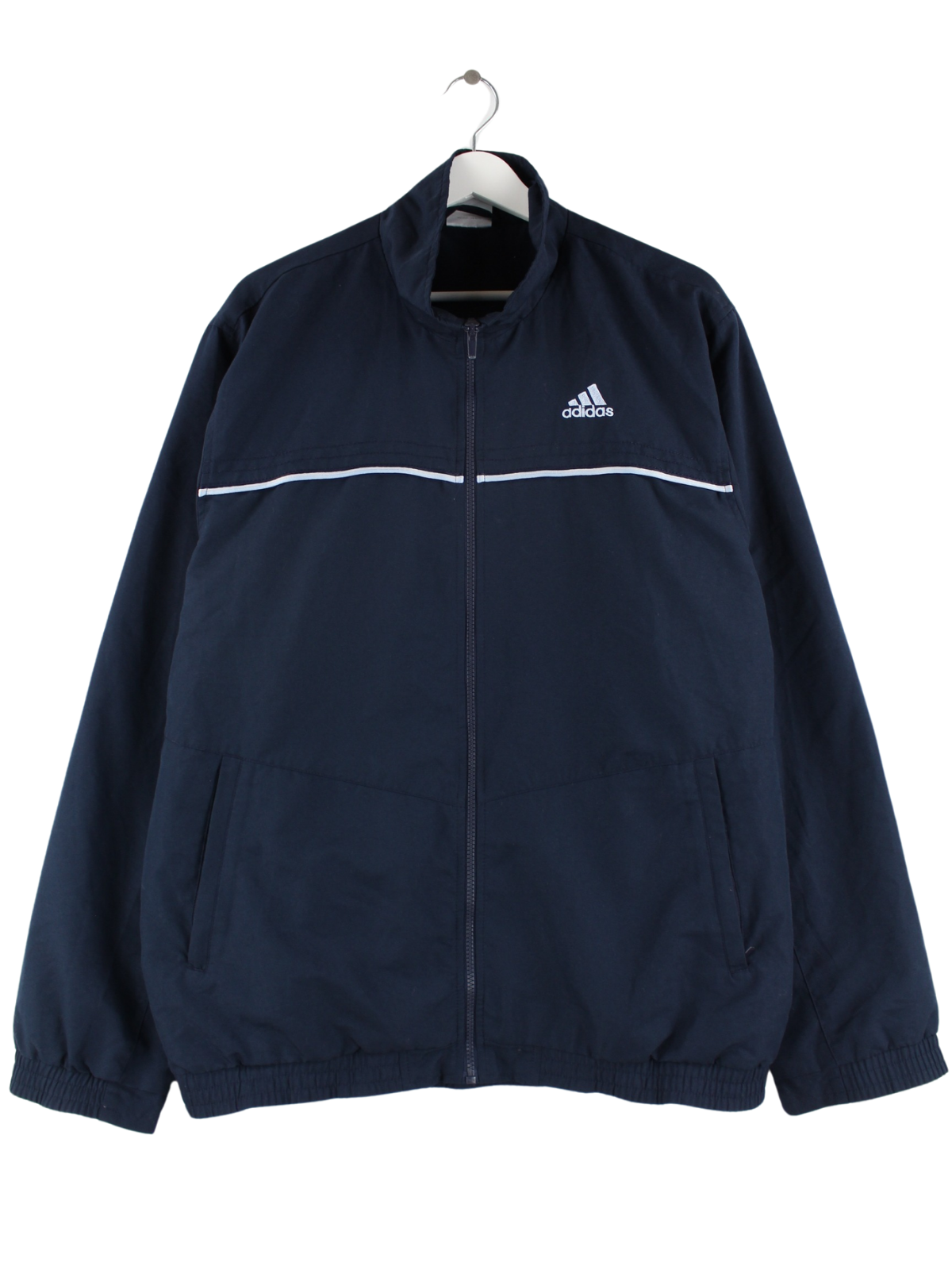 Trainingsjacke vom Brand Adidas in Größe XXL. Sie ist aus Synthetik gefertigt und in Blau im Bestand.
