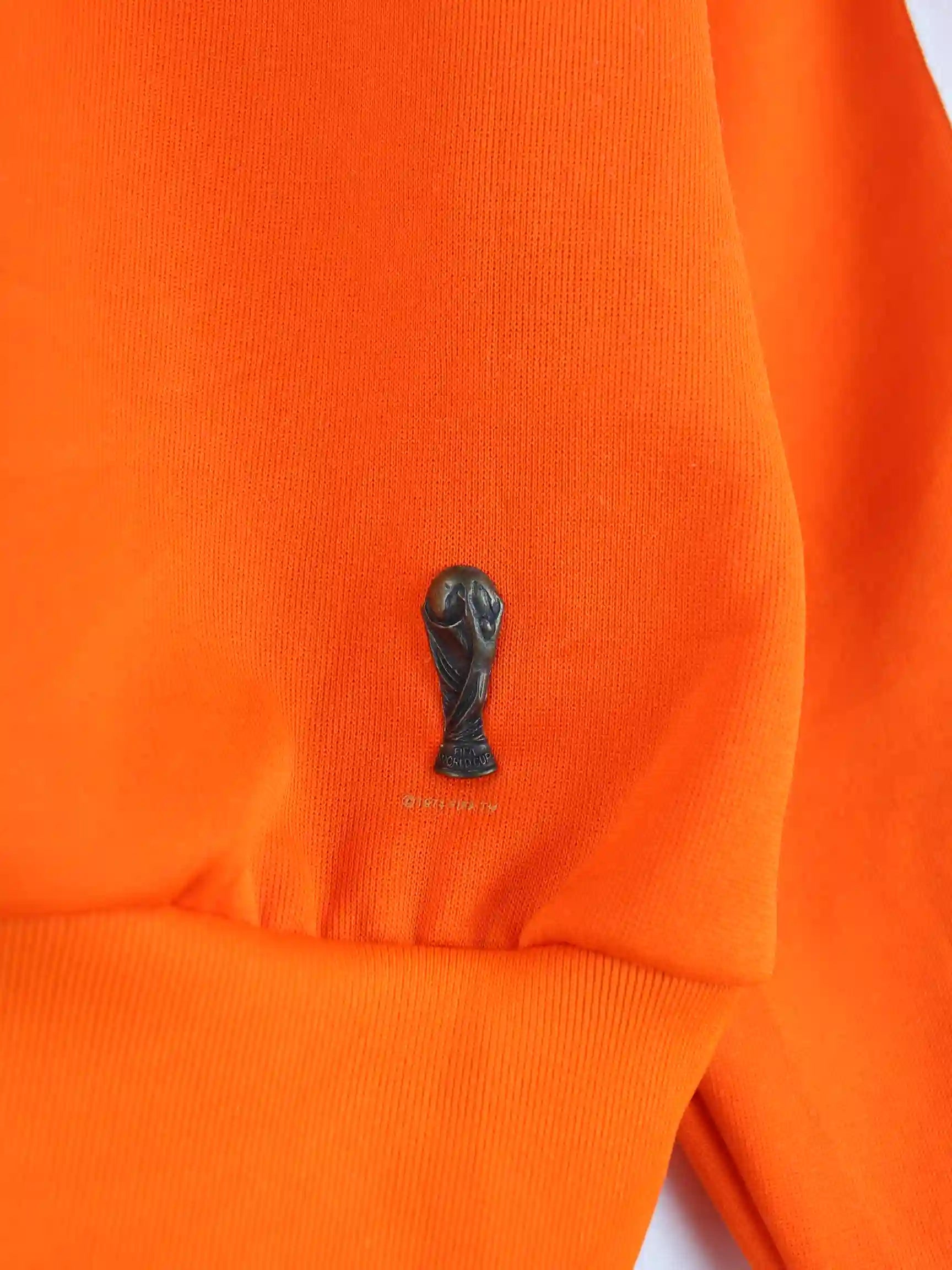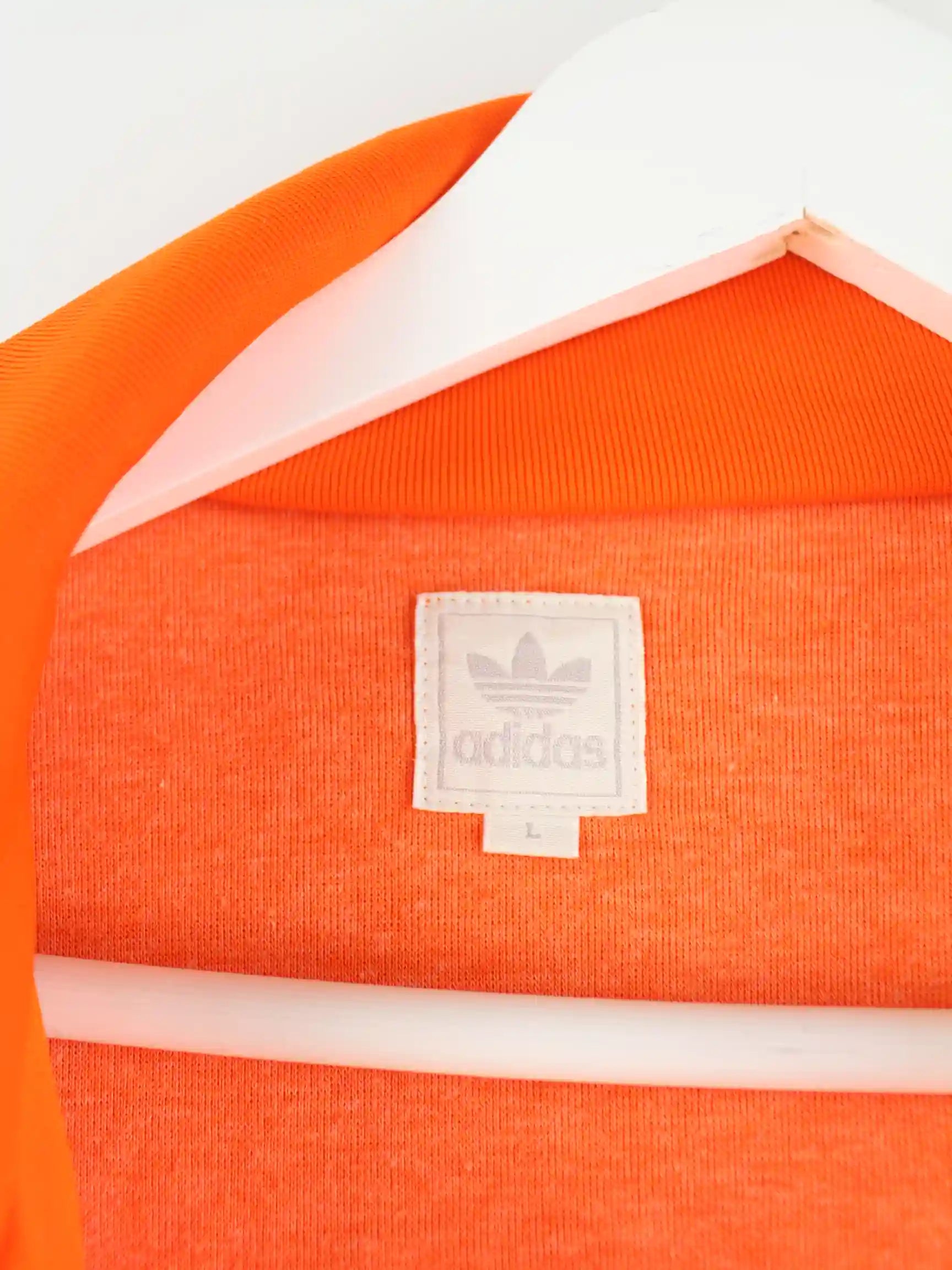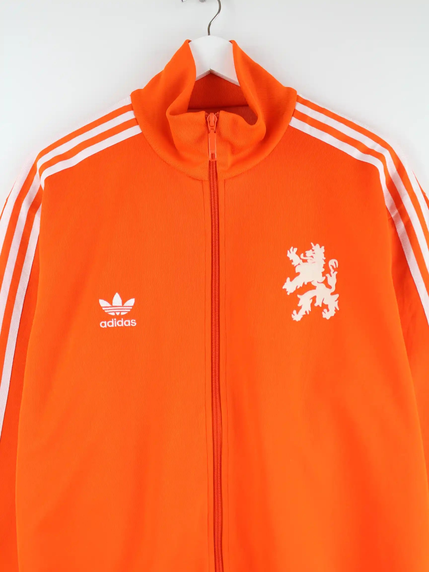 Orangefarbene Adidas Trainingsjacke der Niederlande von der Fußball-Weltmeisterschaft 2006 in Größe L. Sie ist aus Synthetik gefertigt und in sehr gutem Zustand bei uns vorrätig.