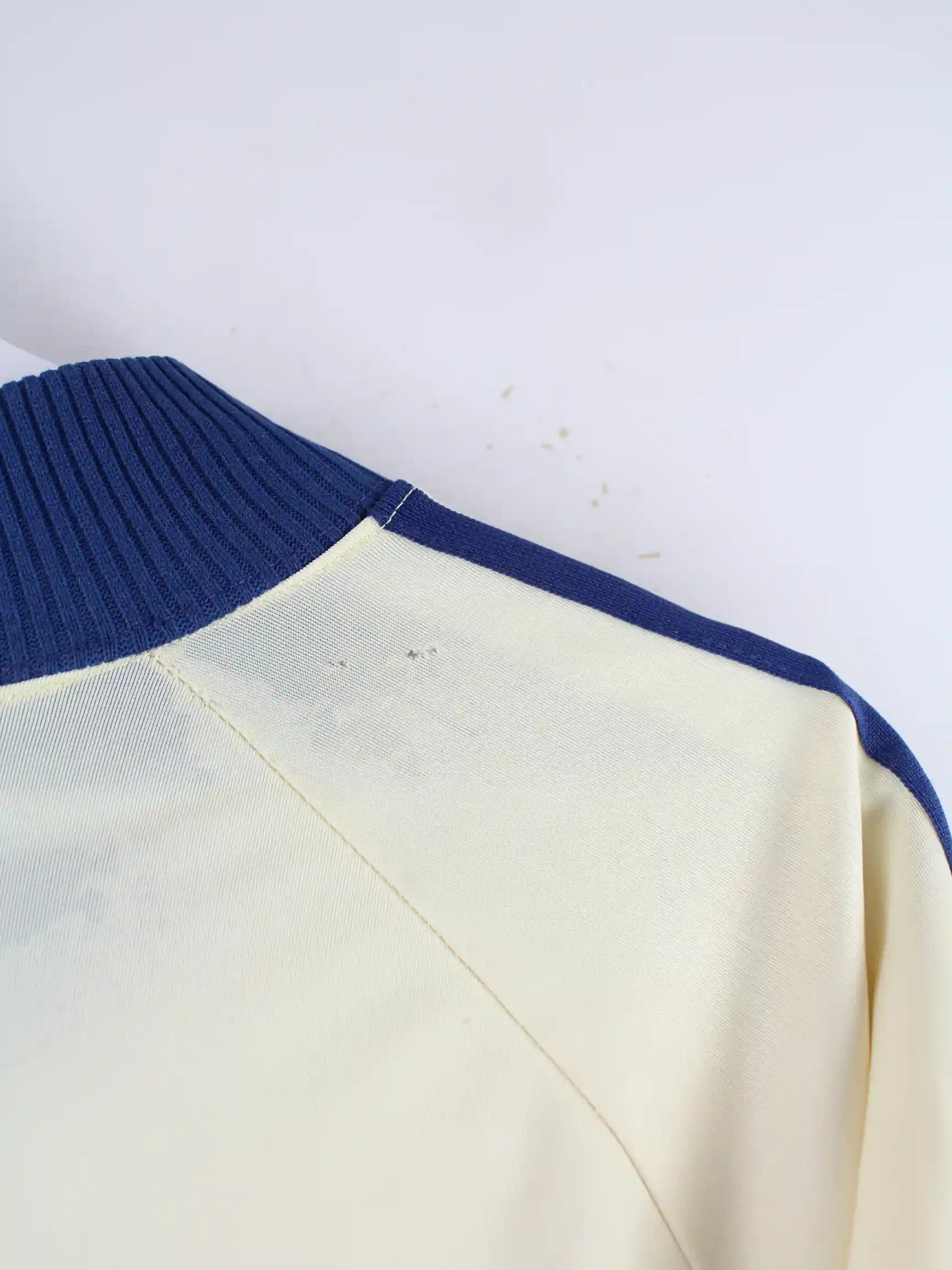 Beigefarbene Trainingsjacke von Adidas aus den 70'ern in Größe M. Sie ist aus Synthetik . Den Zustand würden wir als 'In Ordnung' bezeichnen (vergl. Bilder).