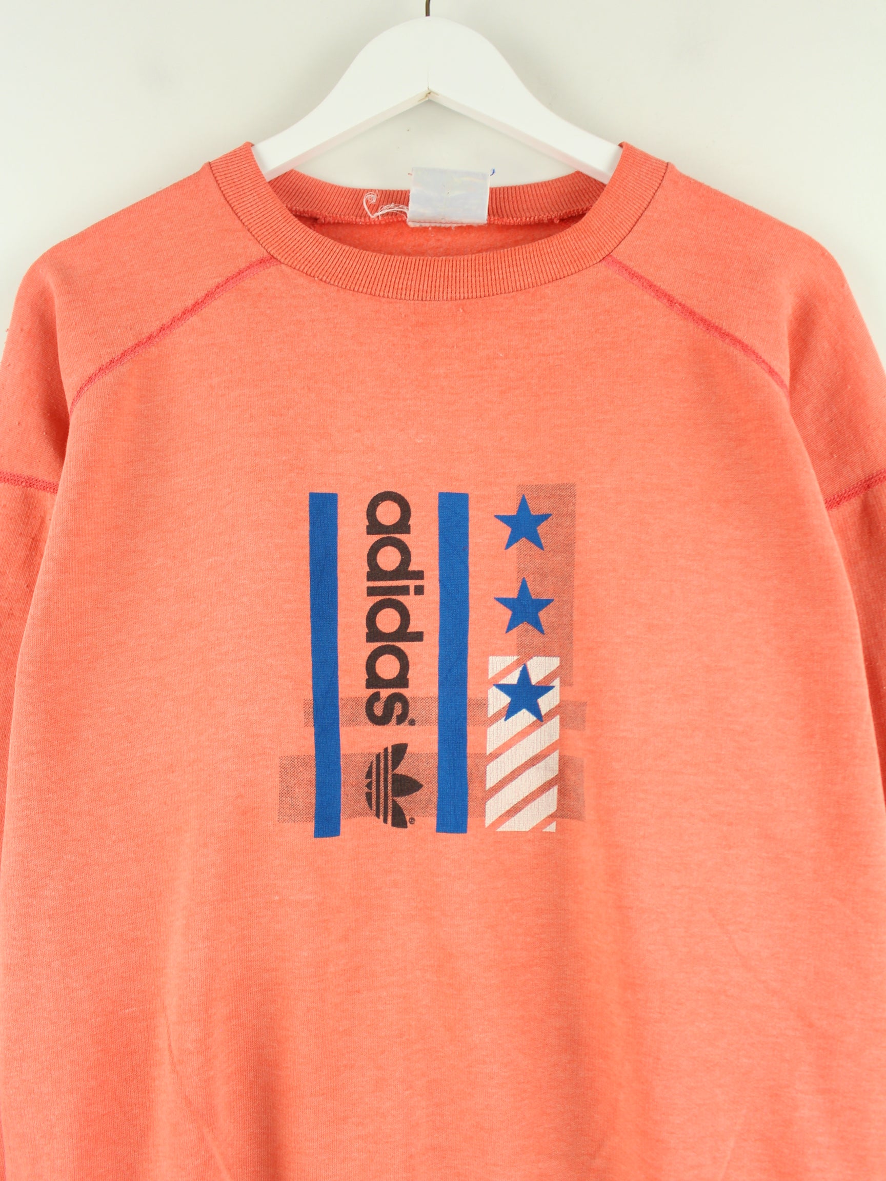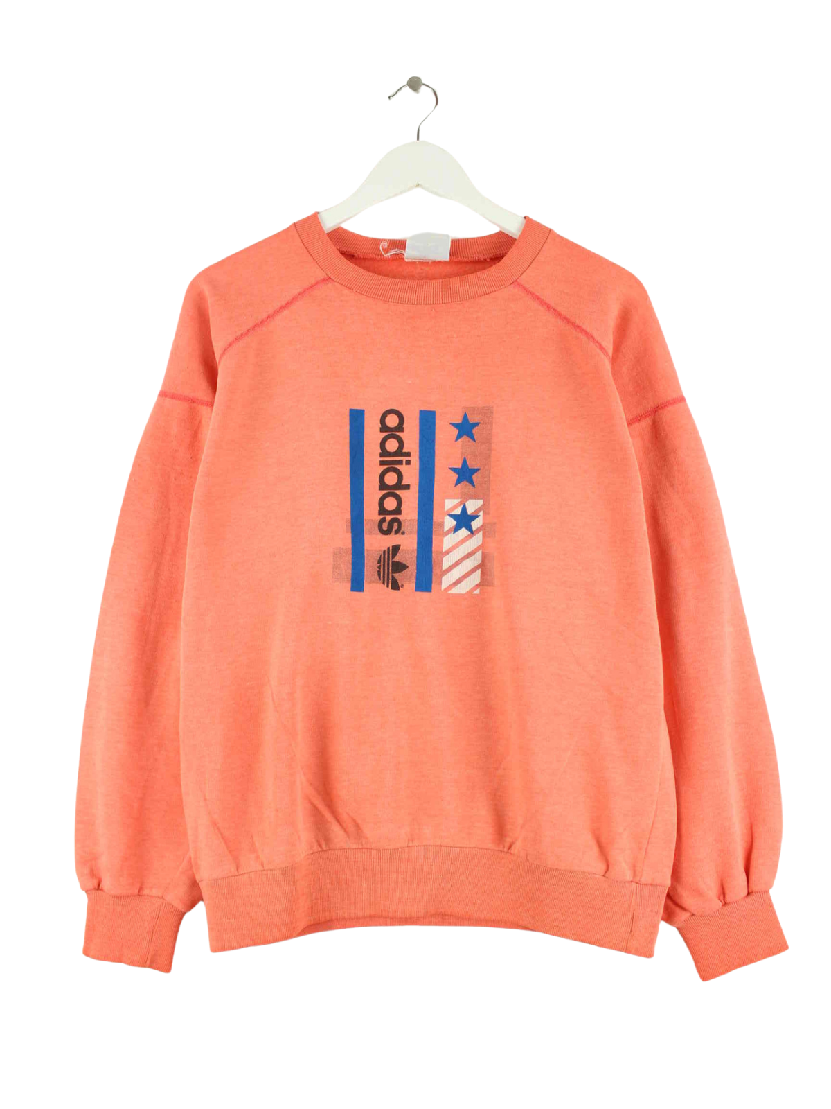 Sweater from the Adidas label in size S from the 70's. It is made from a cotton blend and is available in orange. With a beautiful vintage print.