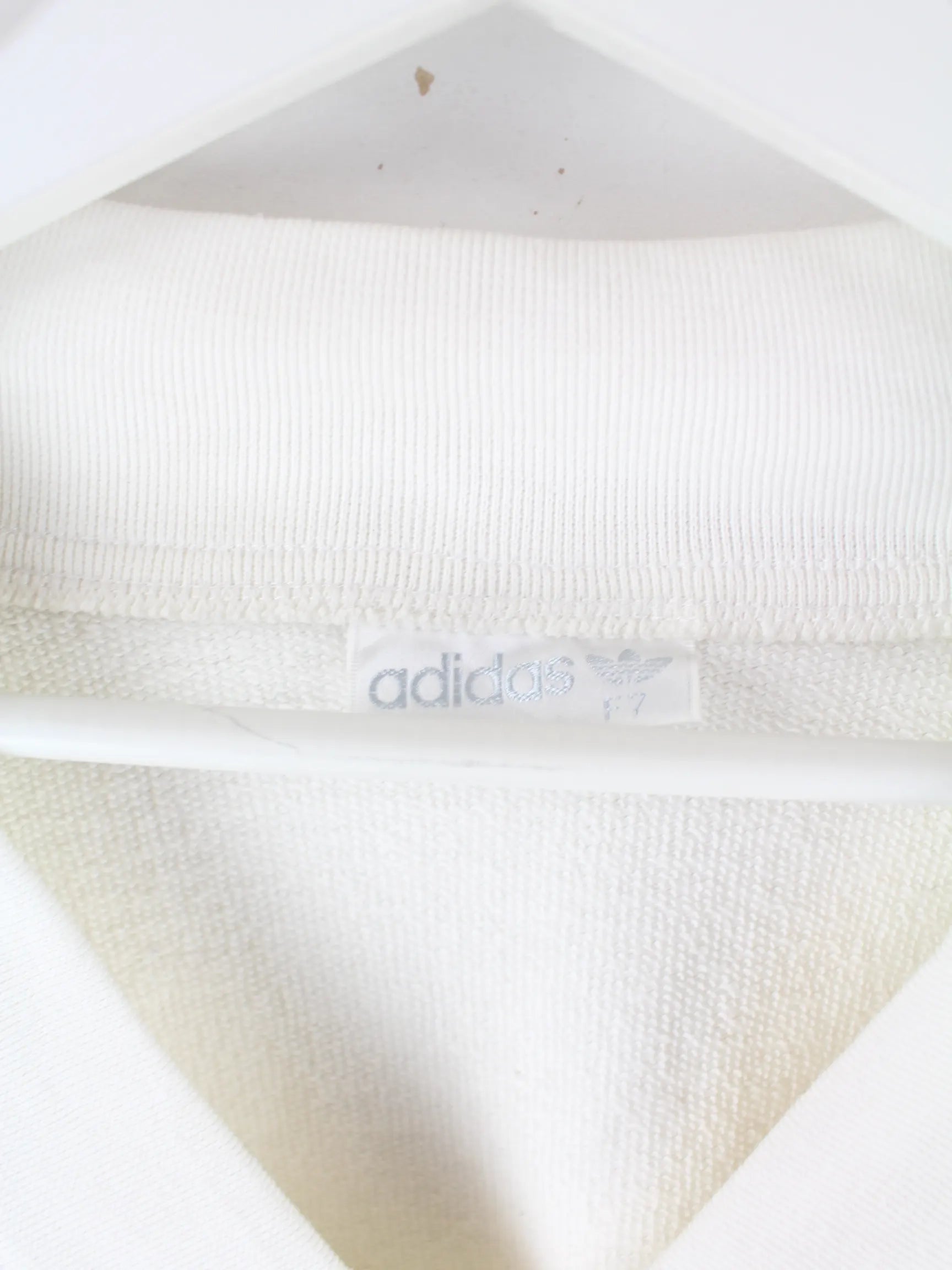 Pullunder vom Brand Adidas in Größe XL aus den 80'ern. Er ist aus einer Baumwollmischung angefertigt und in Weiß im Bestand.
