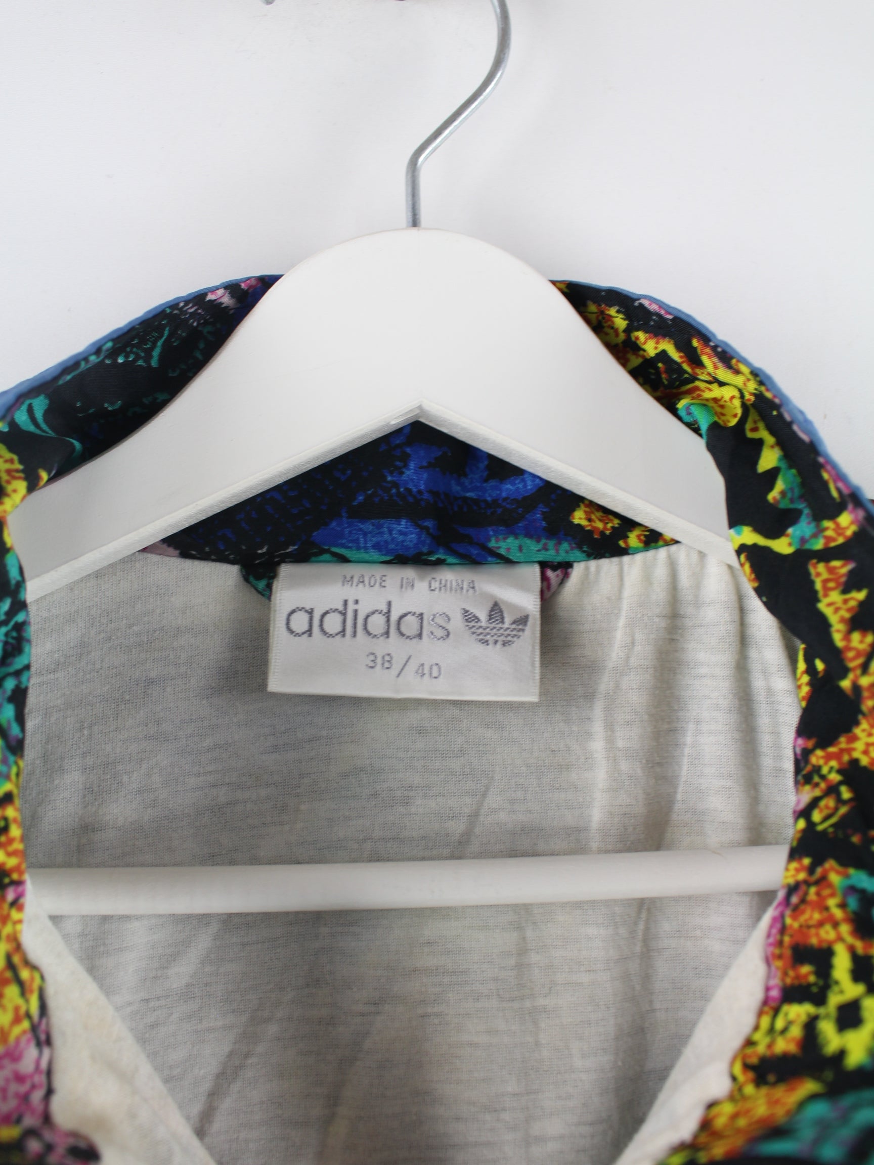 Mehrfarbige Trainingsjacke vom Brand Adidas aus den 80'ern in Größe M. Sie ist aus Synthetik angefertigt und in gutem Zustand im Bestand.