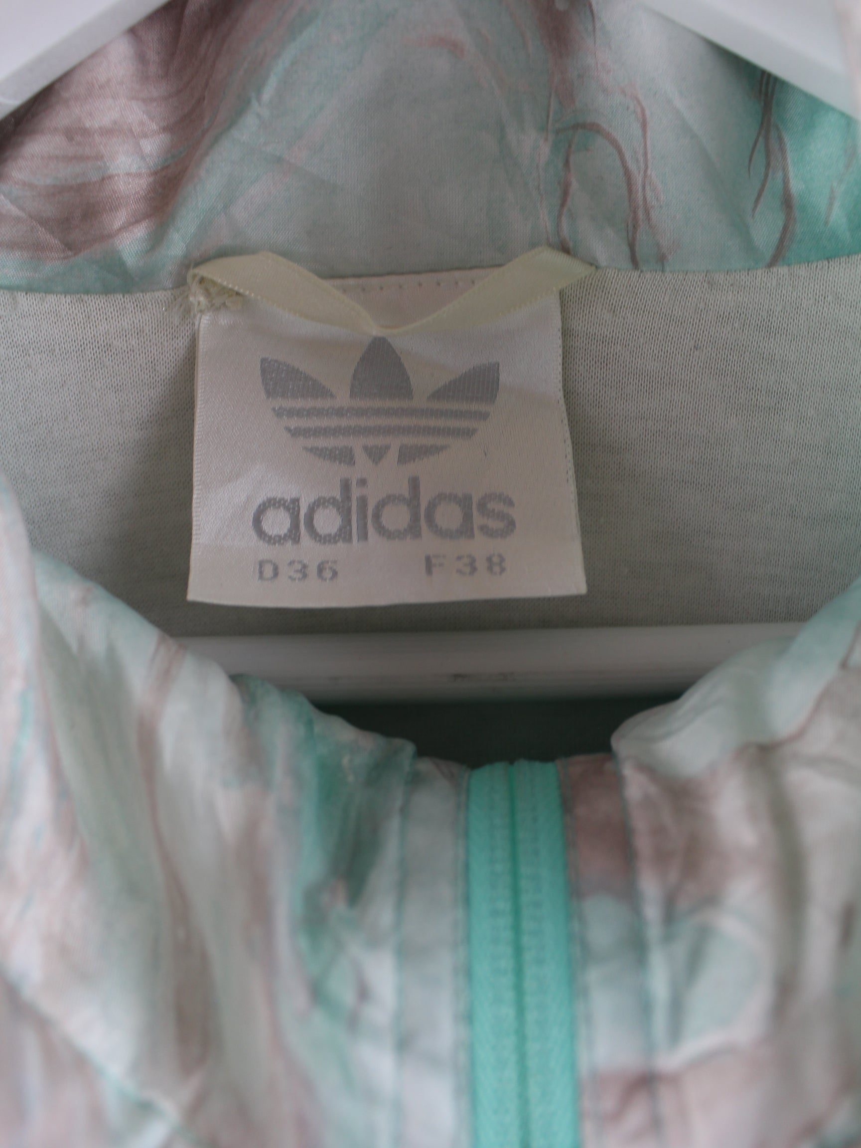 Turquoise training jacket from Adidas from the 80's in size L. It is made of synthetic material. We would describe the condition as 'OK' (see pictures).
