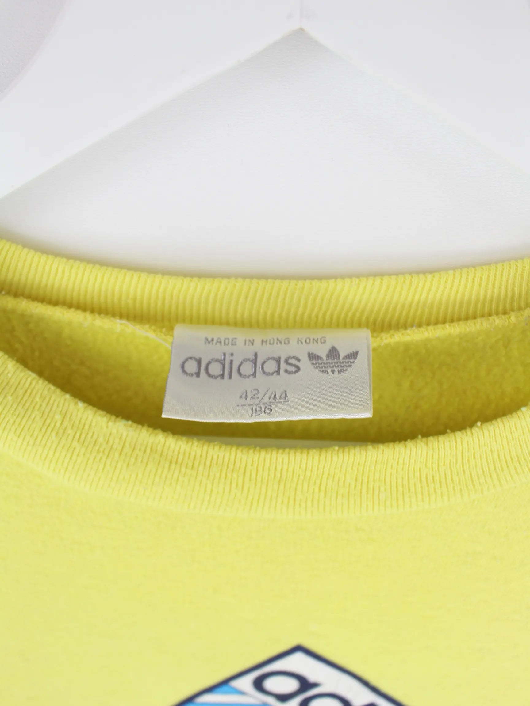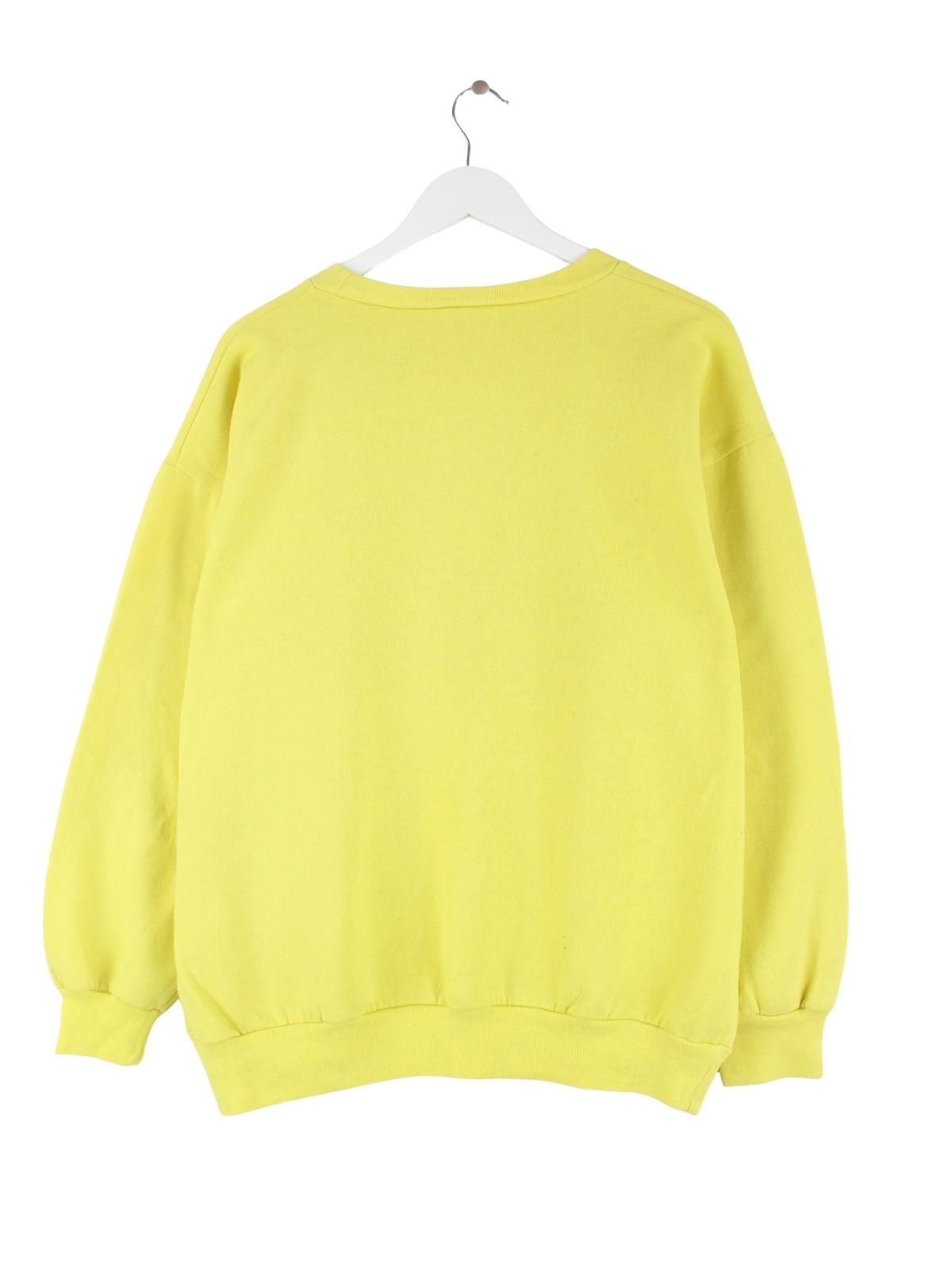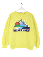 Gelber Sweater vom Brand Adidas aus den 80'ern in Größe S. Er ist aus einer Baumwollmischung und in gutem Zustand zu bekommen. Mit tollem Club Print.