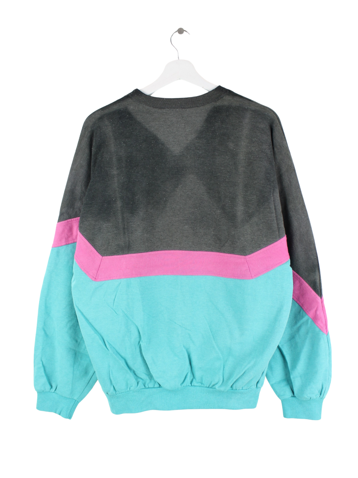 Türkisfarbener Sweater des Labels Adidas aus den 80'ern in Größe M. Er ist aus einer Baumwollmischung produziert. Den Zustand würden wir als 'In Ordnung' bezeichnen (vergl. Bilder).