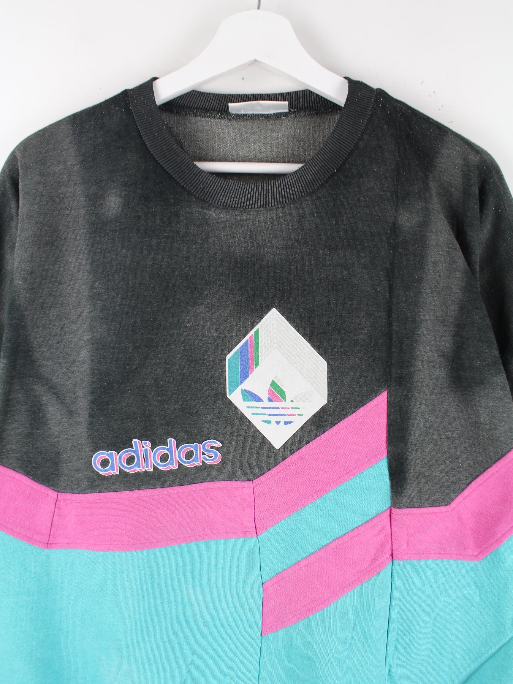 Adidas 80s Vintage Print Faded Sweater Türkis / Grau M
