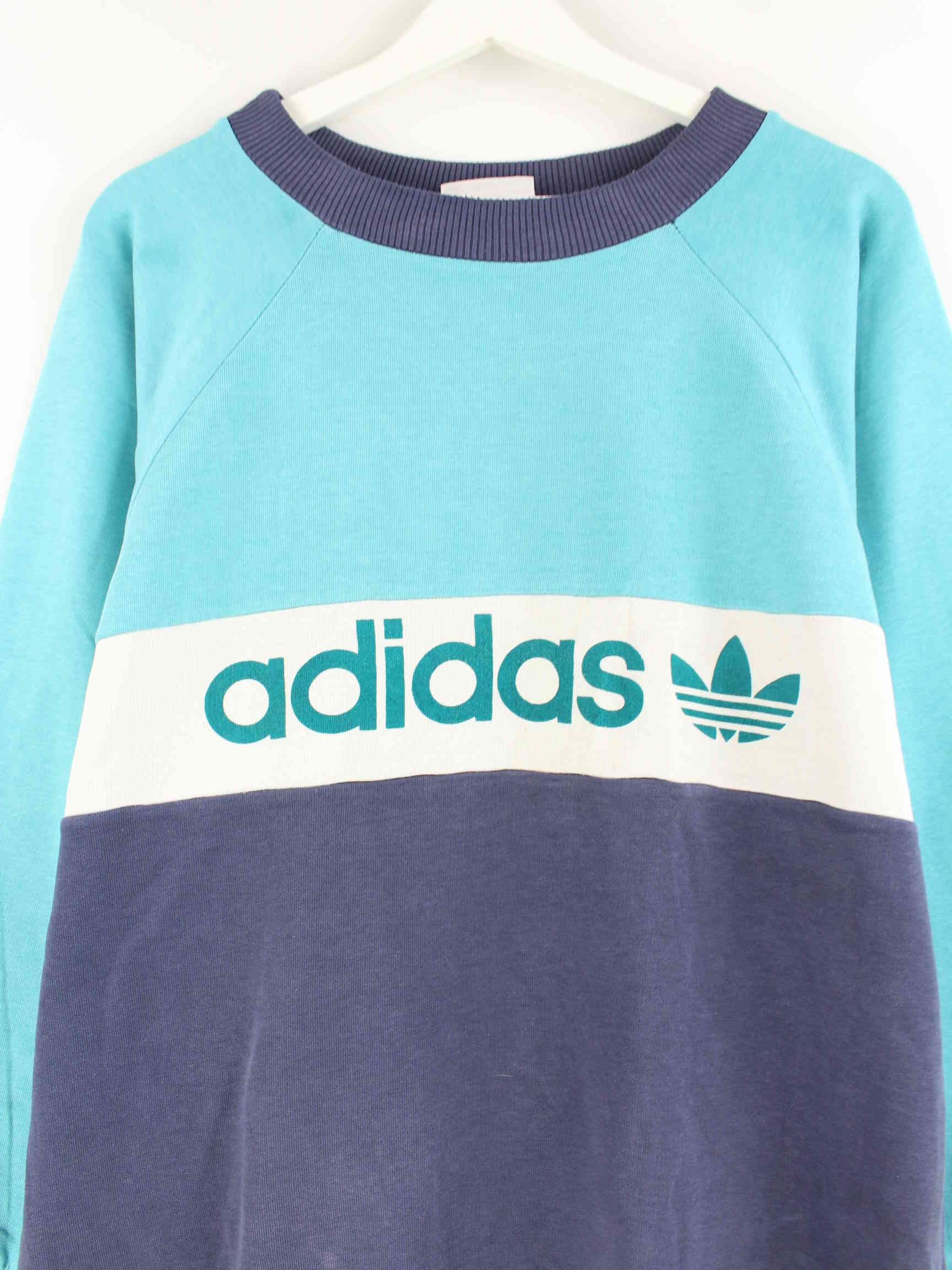 Sweater from Adidas in size L from the 80's. It is made from a cotton blend and is available in blue. With rare vintage print.