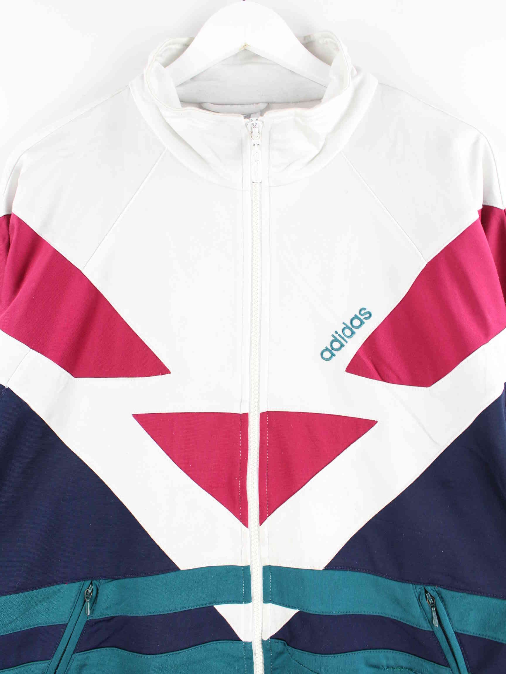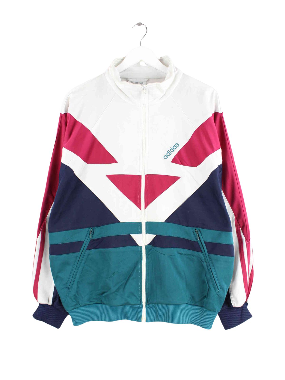 Multicolored training jacket from the Adidas brand from the 80s in size L. It is made of synthetic. We would describe the condition as 'OK' (see pictures).