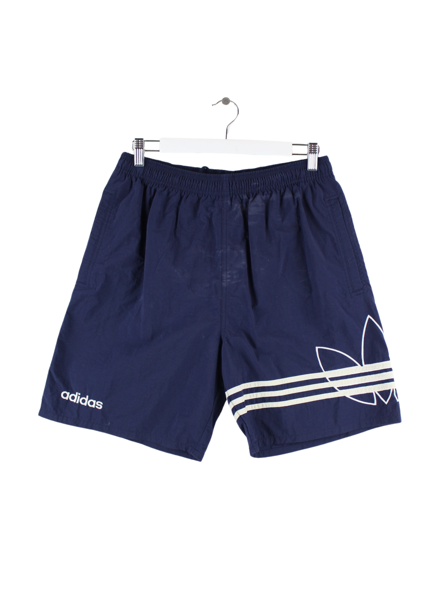 Adidas brand shorts with embroidery in size M from the 90's. They are made of cotton and come in blue.