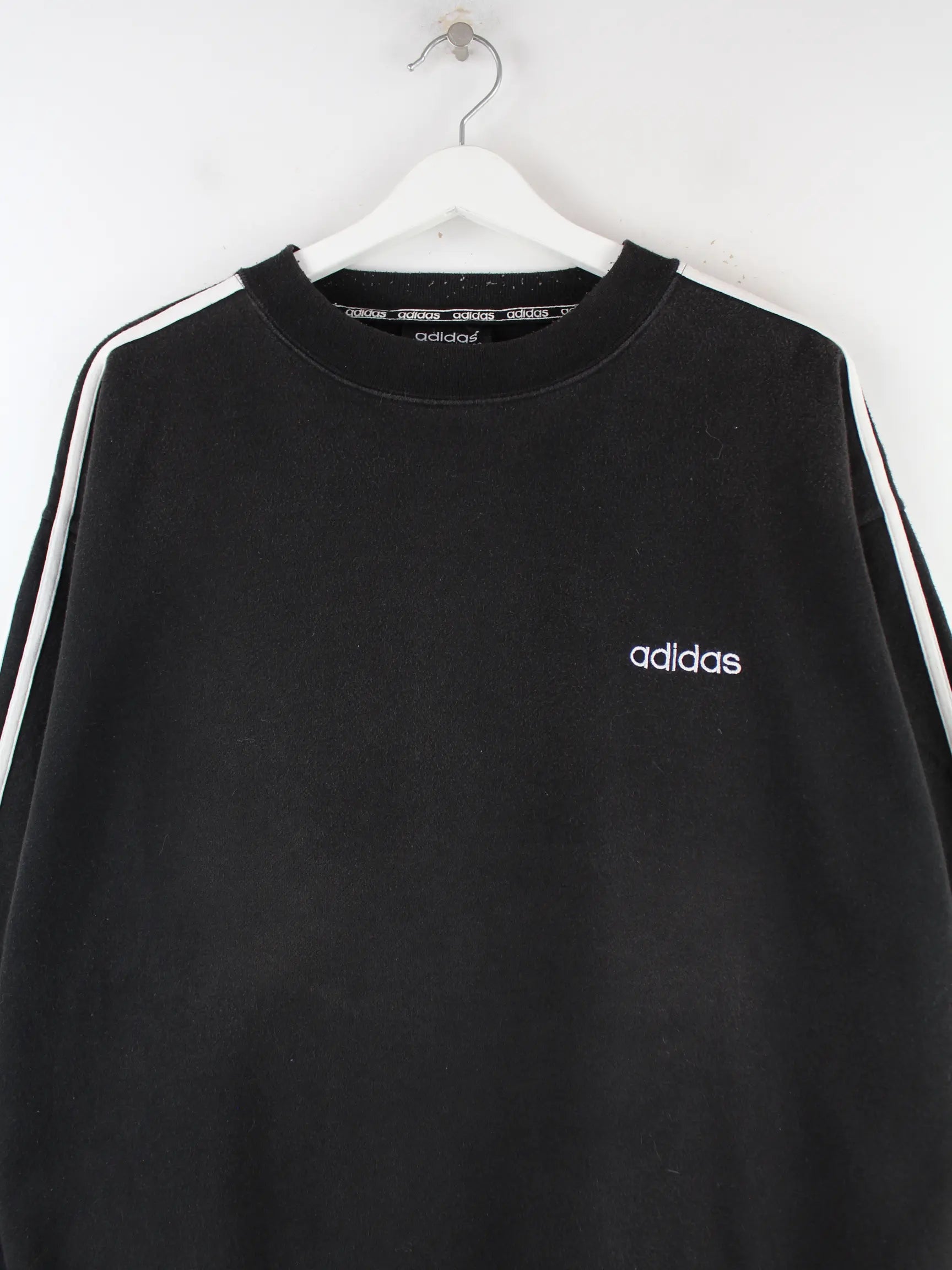 Sweater der Marke Adidas in Größe XL aus den 90'ern. Er ist aus einer Baumwollmischung hergestellt und in Schwarz zu haben.