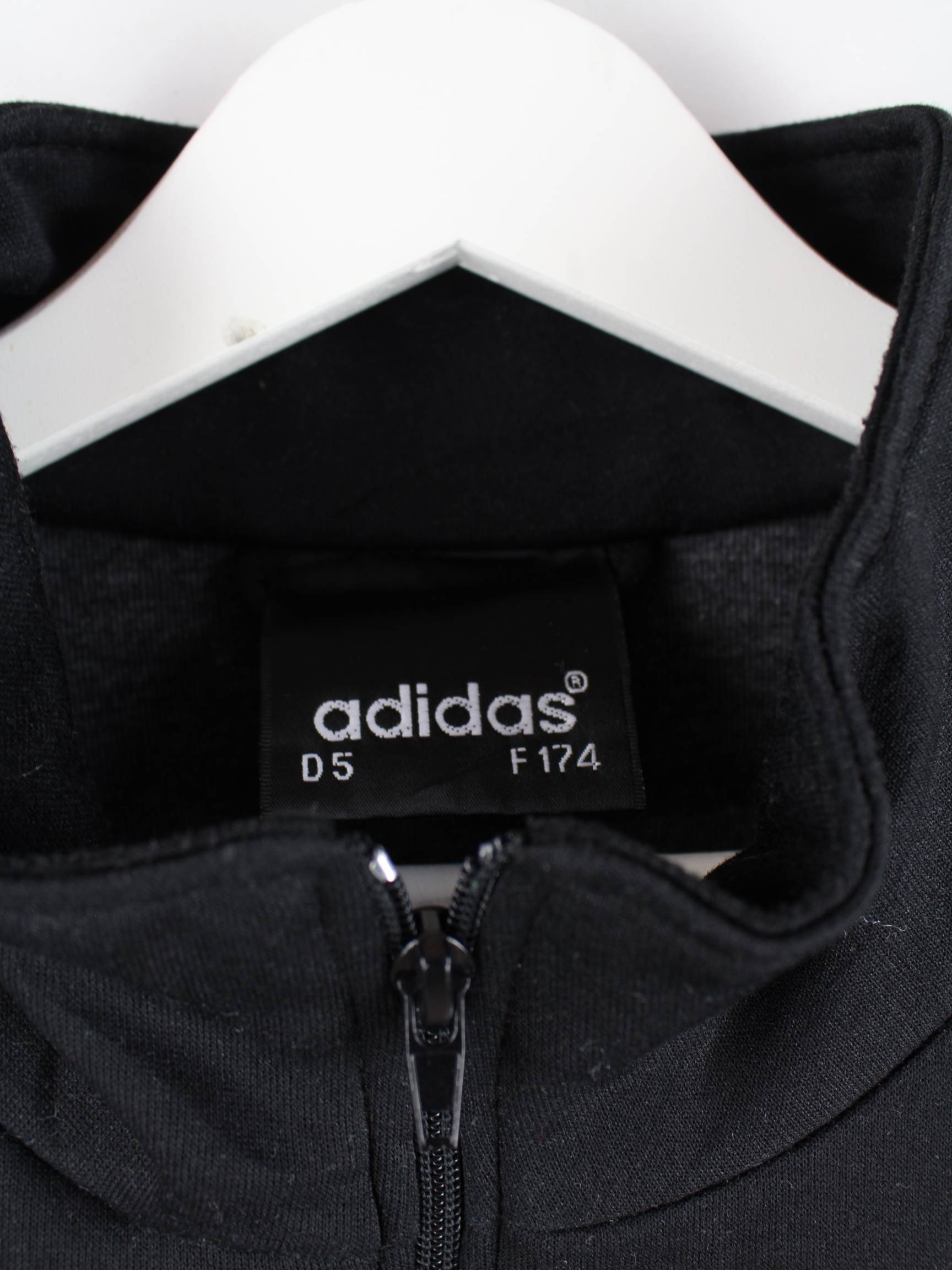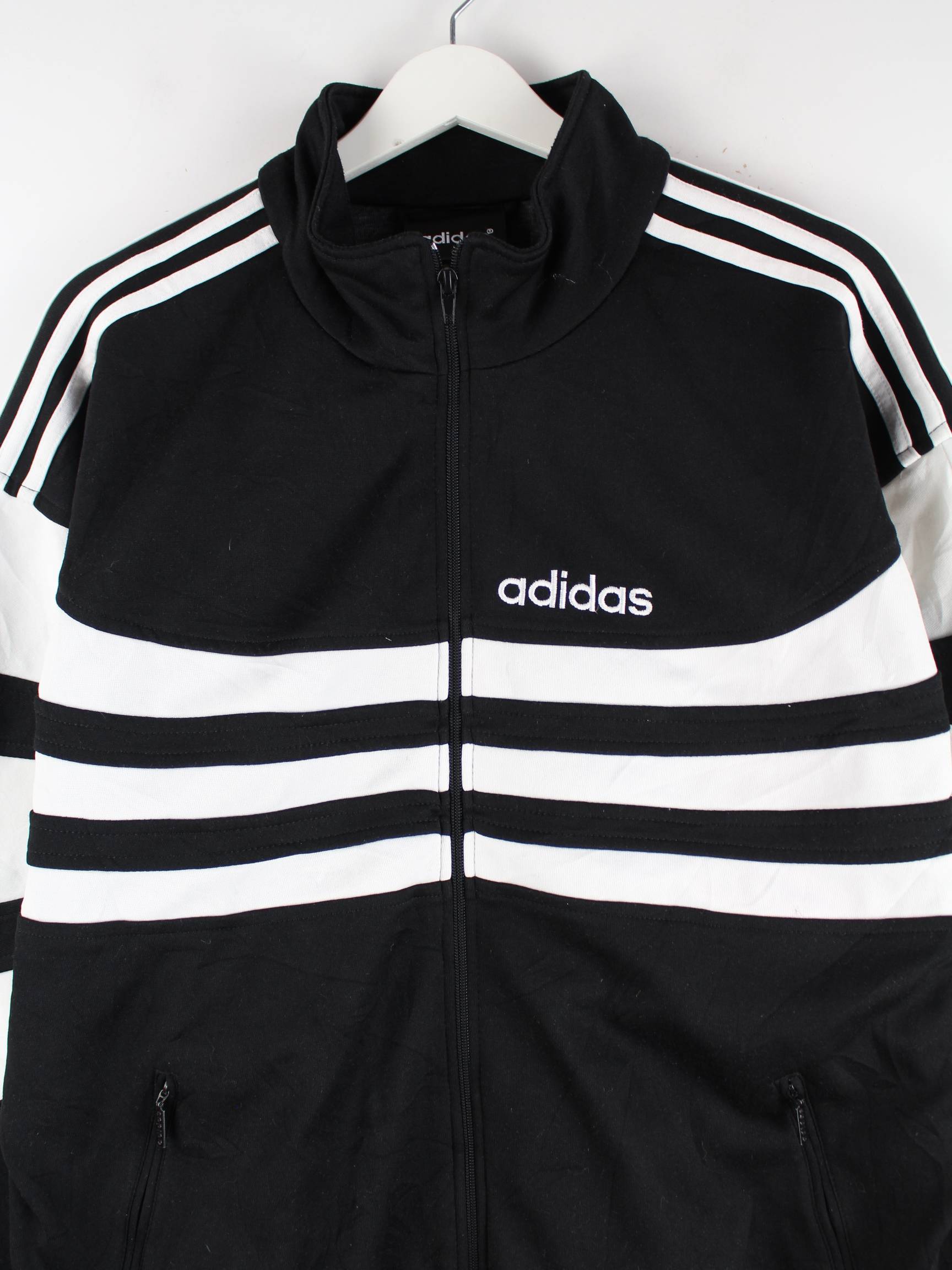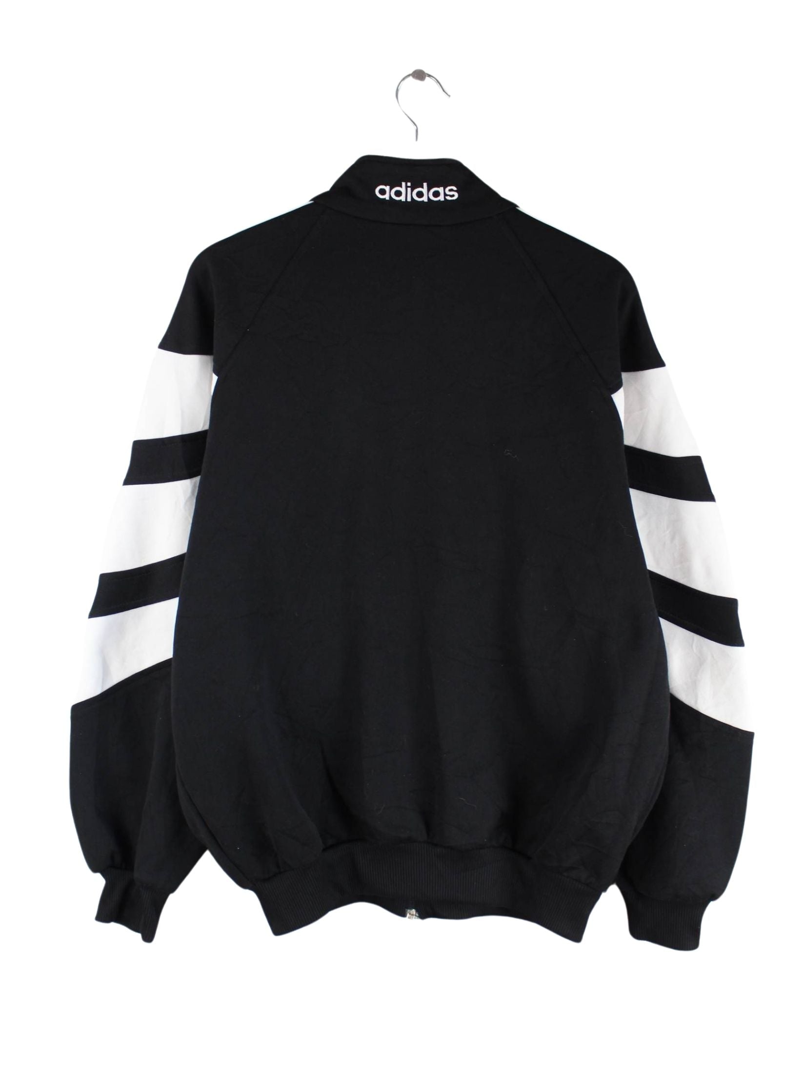 Trainingsjacke vom Brand Adidas in Größe L aus den 90'ern. Sie ist aus Synthetik angefertigt und in Schwarz bei uns vorrätig.