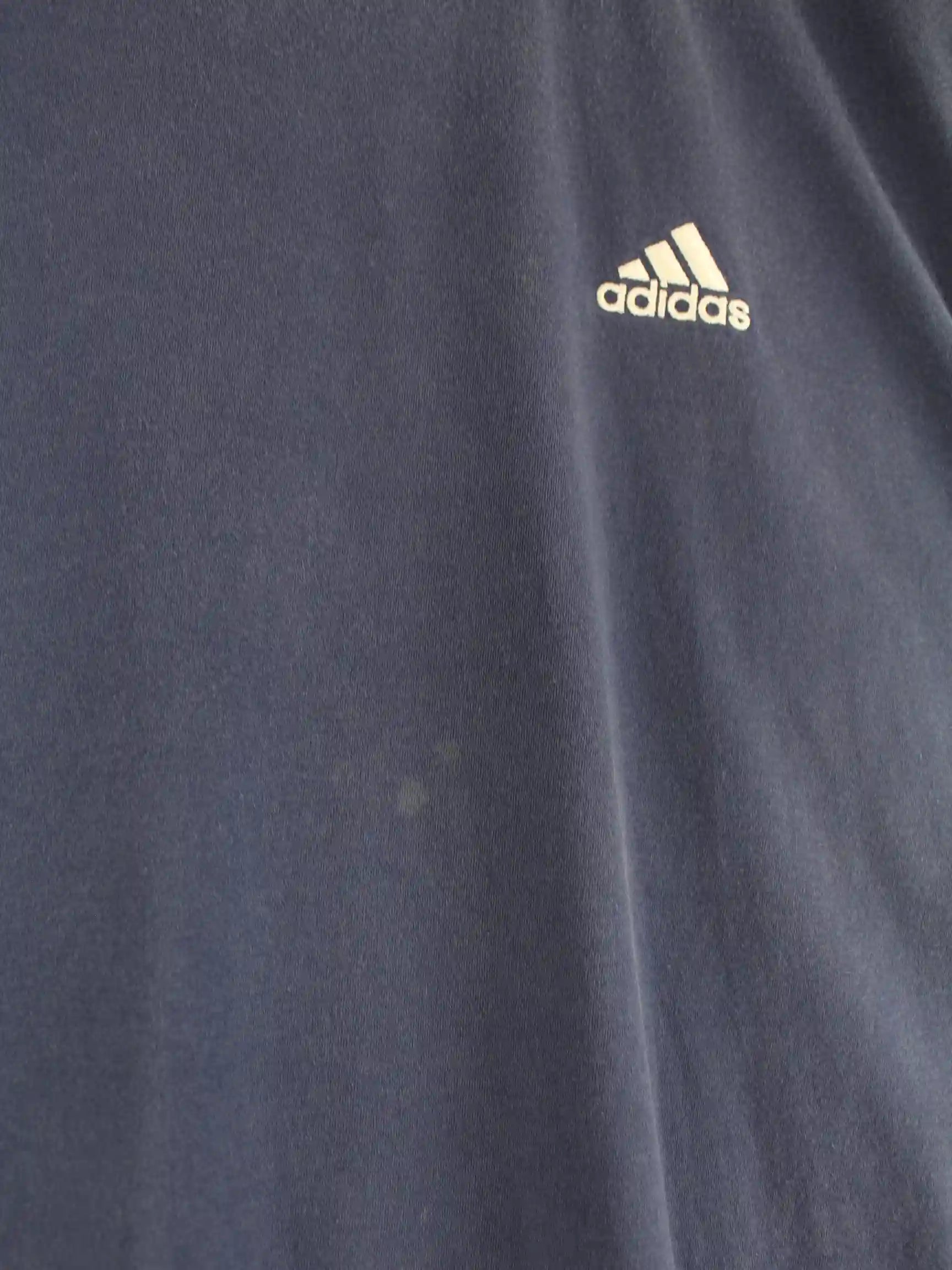 Blaues T-Shirt des Labels Adidas aus den 90'ern in Größe L. Es ist aus Baumwolle produziert. Den Zustand würden wir als 'In Ordnung' bezeichnen (vergl. Bilder).