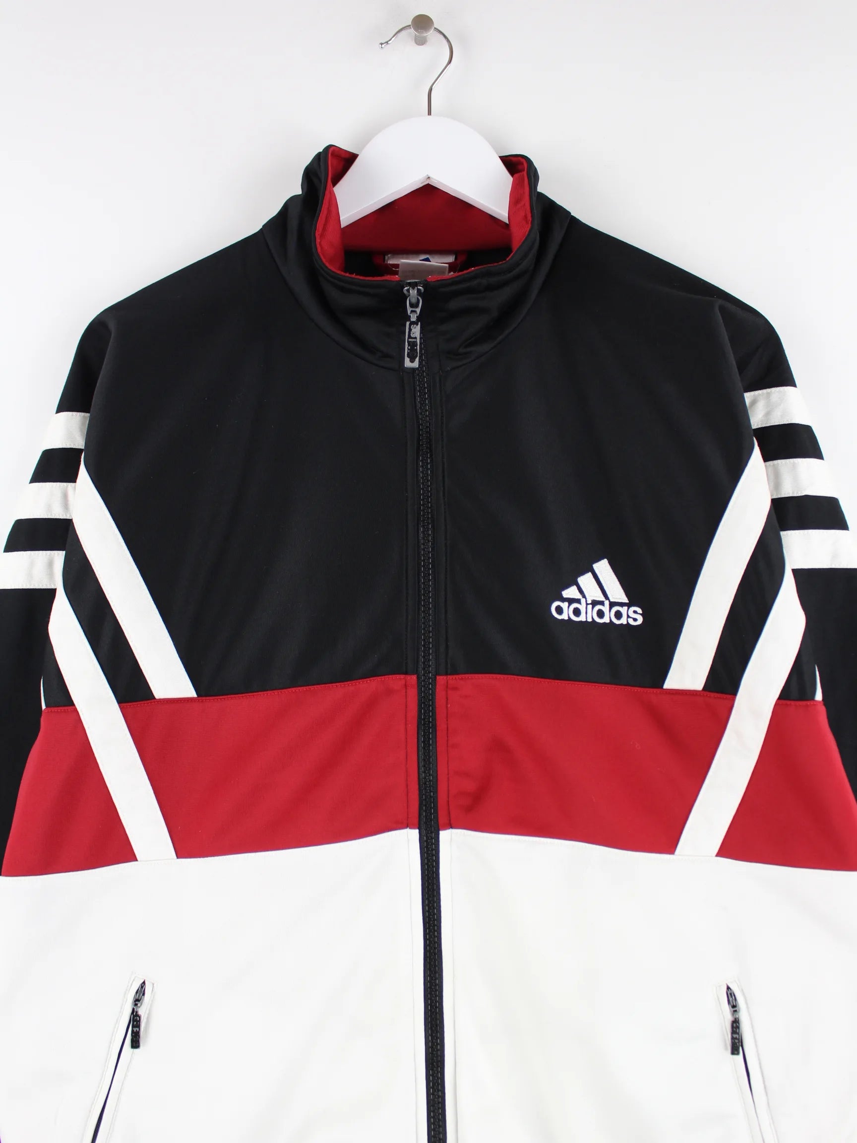 Trainingsjacke der Brand Adidas in Größe XXL aus den 90'ern. Sie ist aus Synthetik produziert und in bunten Farben auf Lager.