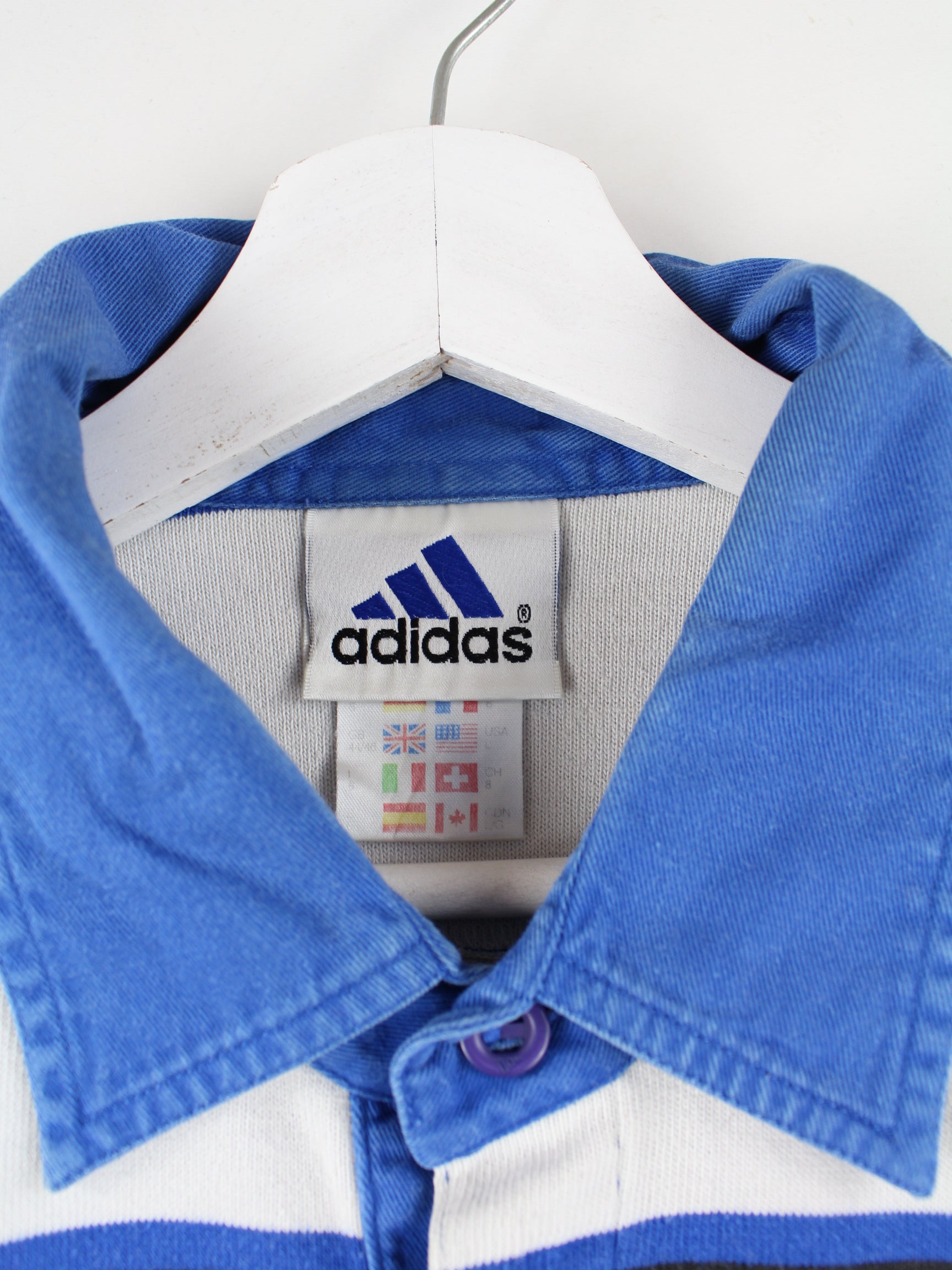 Polo shirt from the Adidas brand with embroidered motifs in size XL from the 90's. It is made of a cotton blend and is available in bright colors.