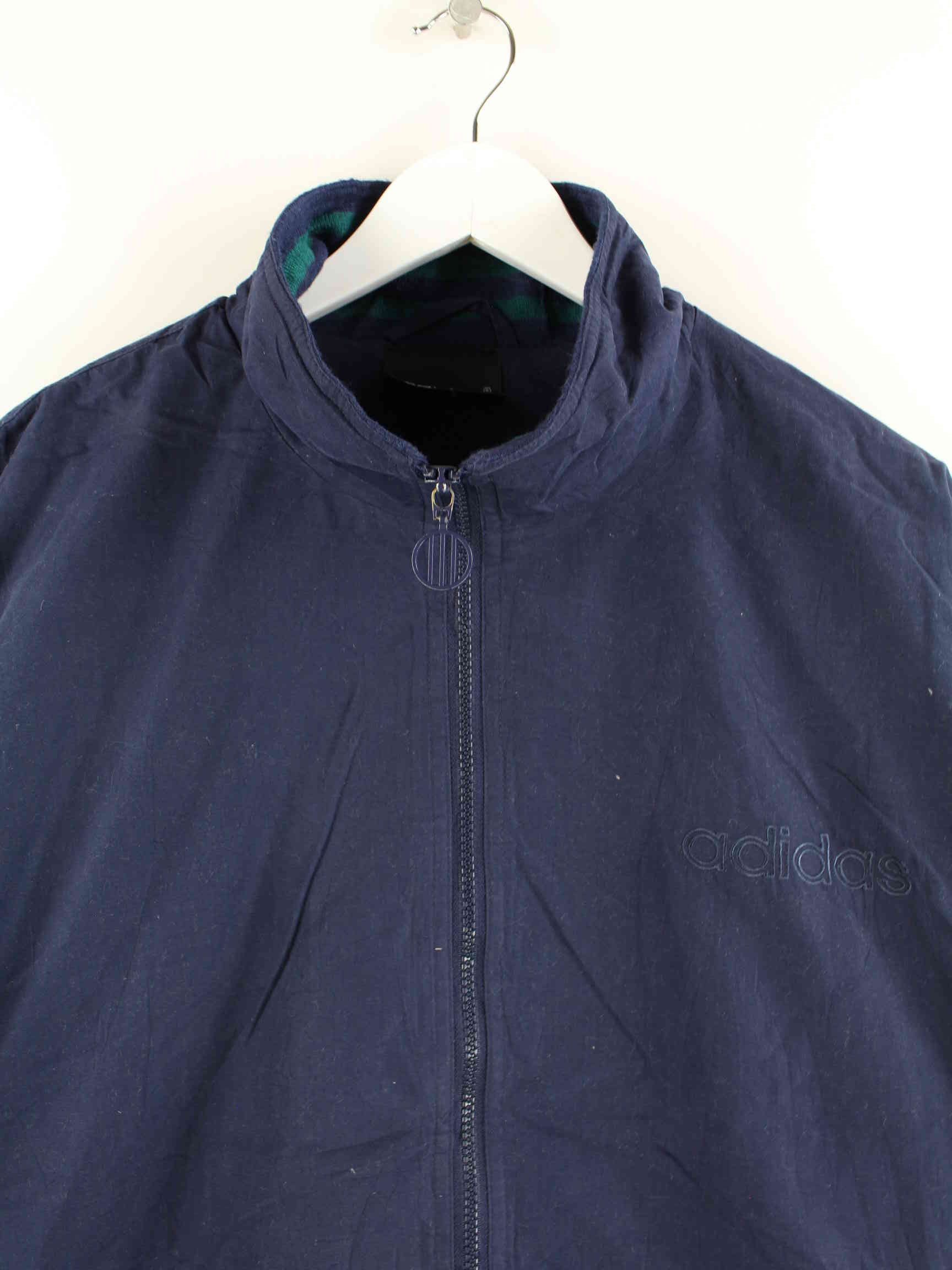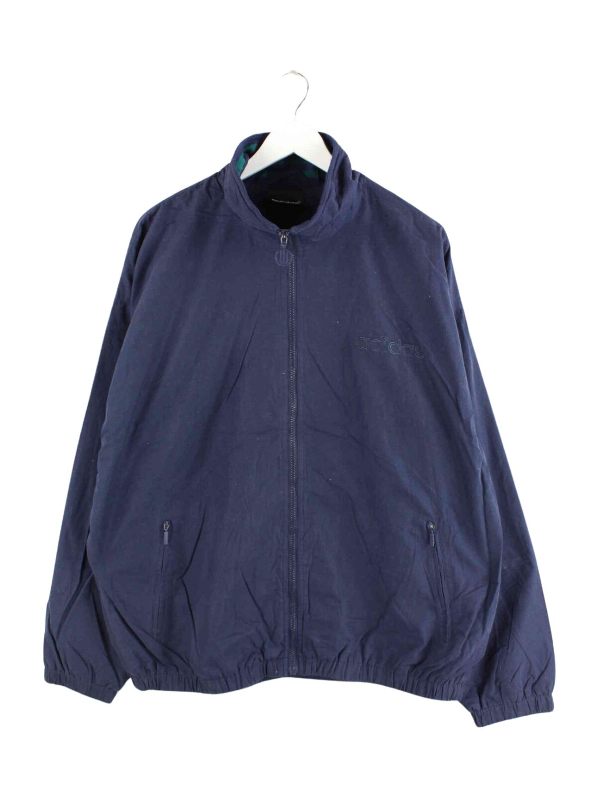 Blue training jacket with Adidas embroidery from the 90s in size XXL. It is made of synthetic material and is in stock in good condition.