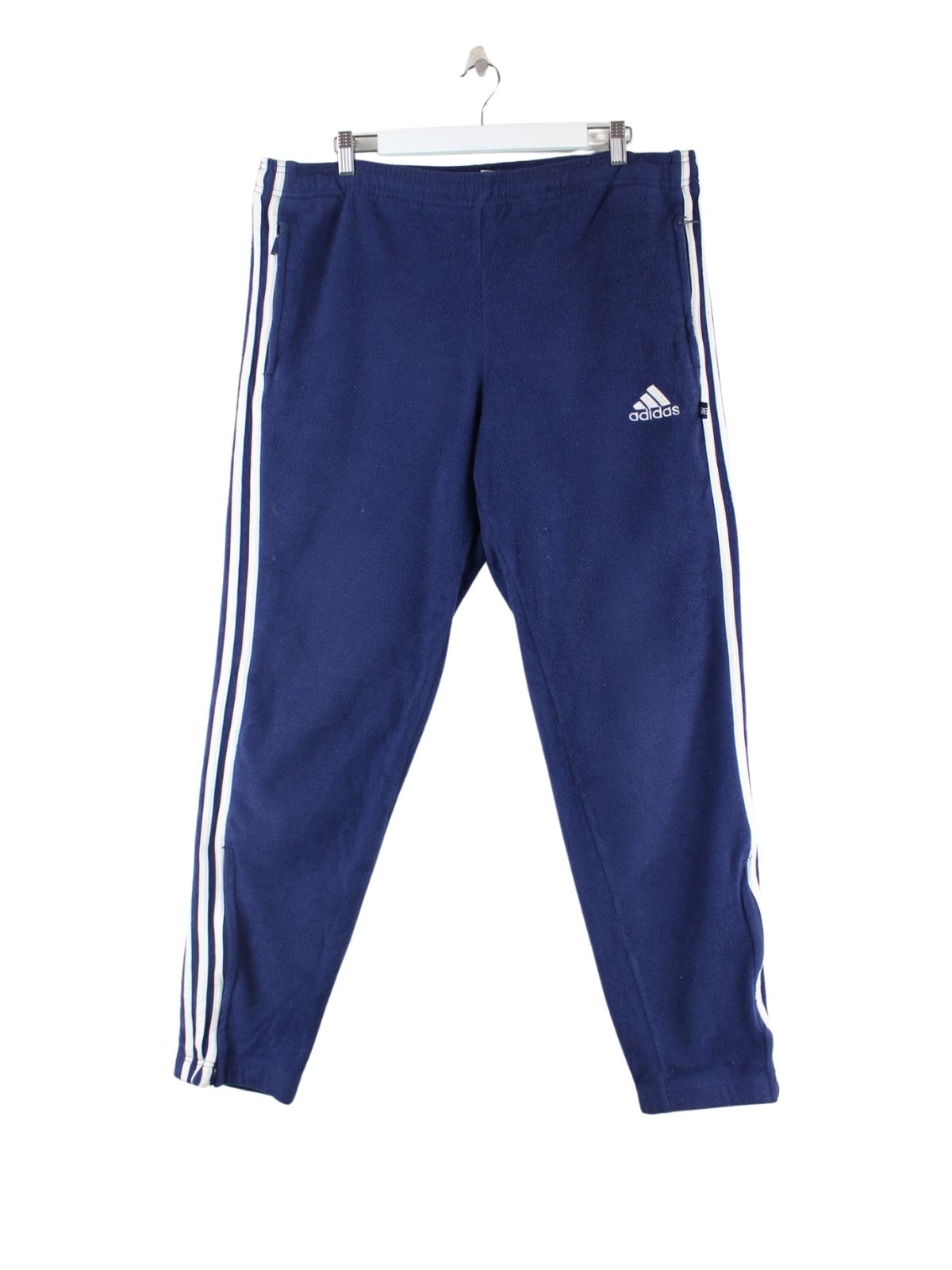 Jogginghose aus dem Hause Adidas in Größe XL aus den 90'ern. Sie ist aus kuscheligem Fleece und in Blau zu haben.