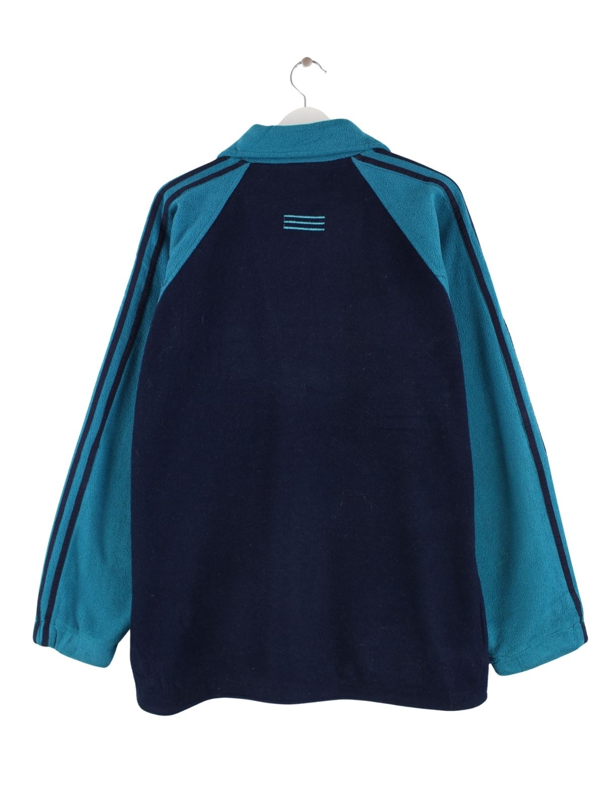 Grüne Leichte Jacke mit kurzem Reißverschluß vom Label Adidas aus den 90'ern in Größe XXL. Sie ist aus behaglichem Fleece und in sehr gutem Zustand vorrätig.